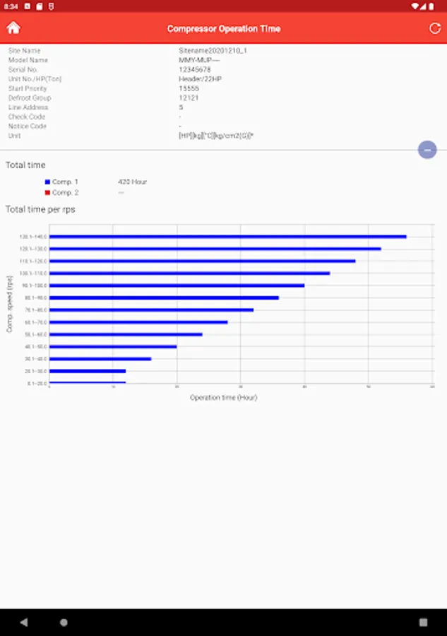 - Displaying operation time of compressor(s)
