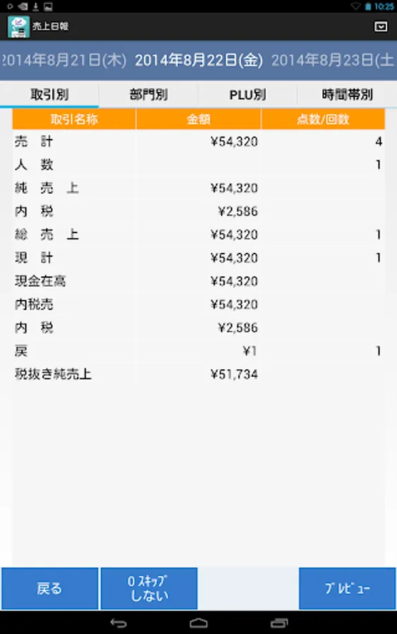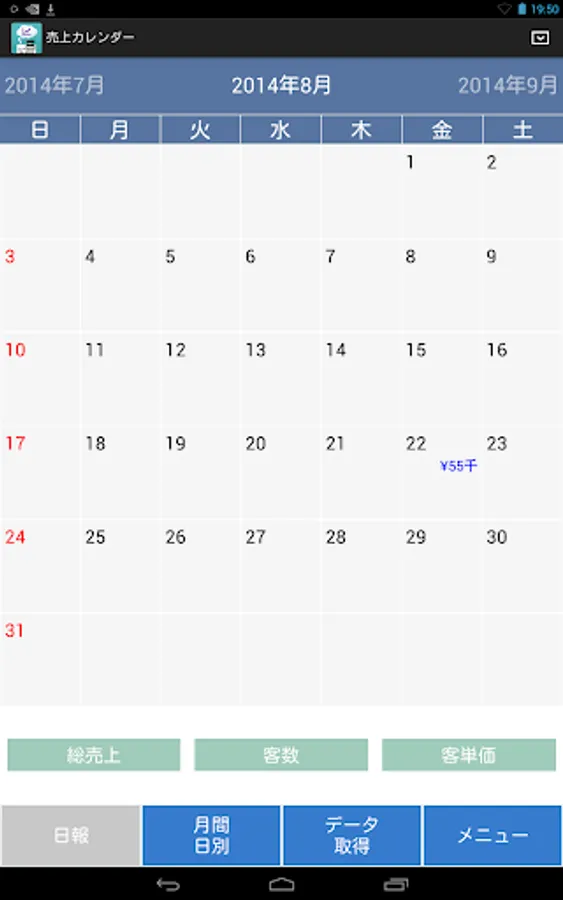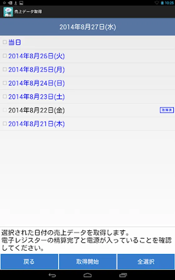 売 上 Sales data acquired from MA-770 will be displayed in list format. Of acquired data