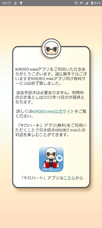 (1) The paid service for the KIROBO mini app has ended.