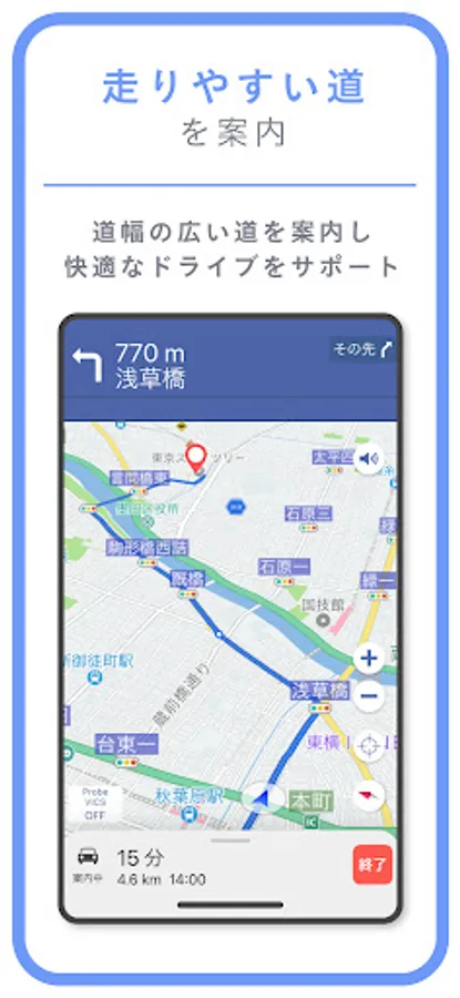 Based on the congestion situation in real time, we propose the optimal route along with the highly accurate estimated arrival time.