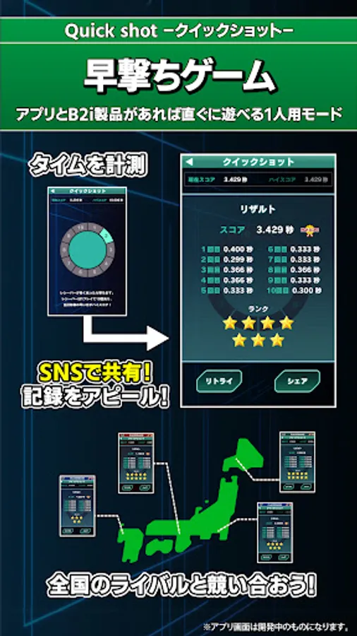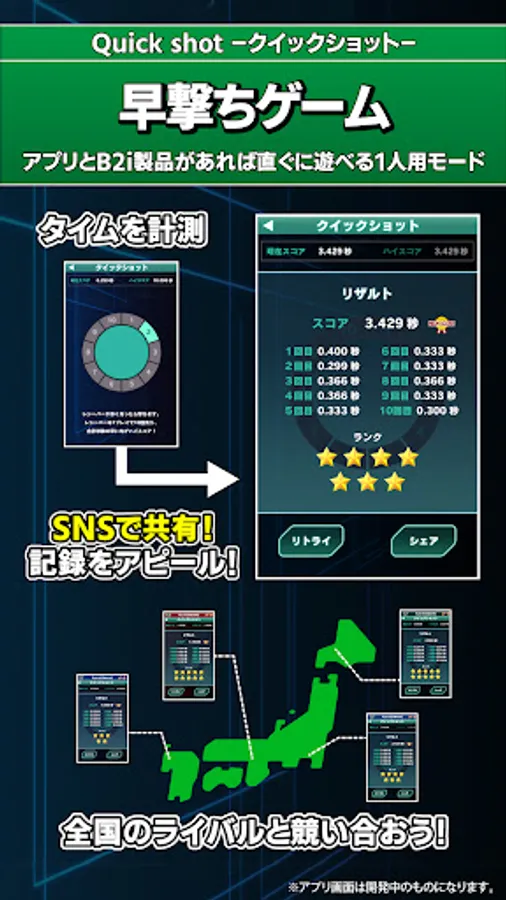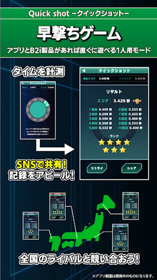 By connecting a smartphone with this app installed to a B2i compatible product, you can participate in games played in the field.
