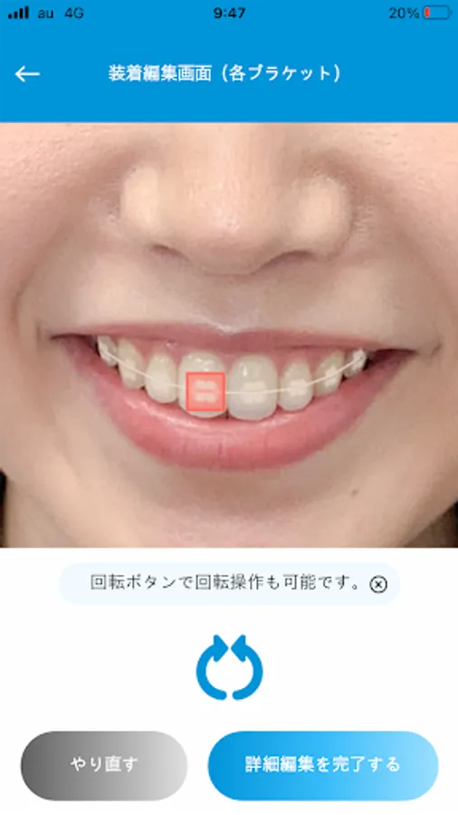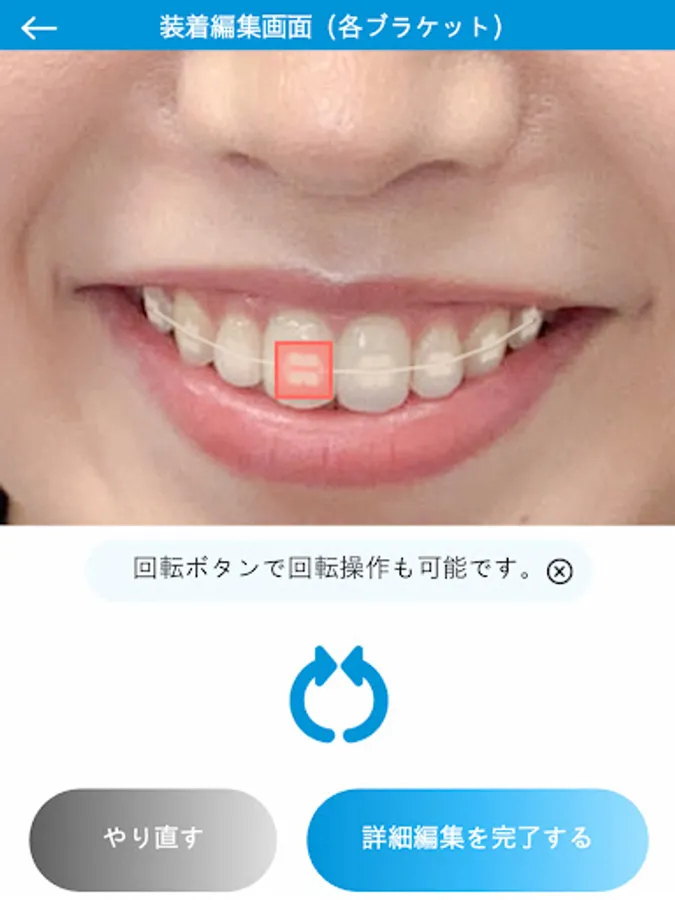 You can combine the image of the orthodontic device with the image of the mouth taken with the camera in the app.