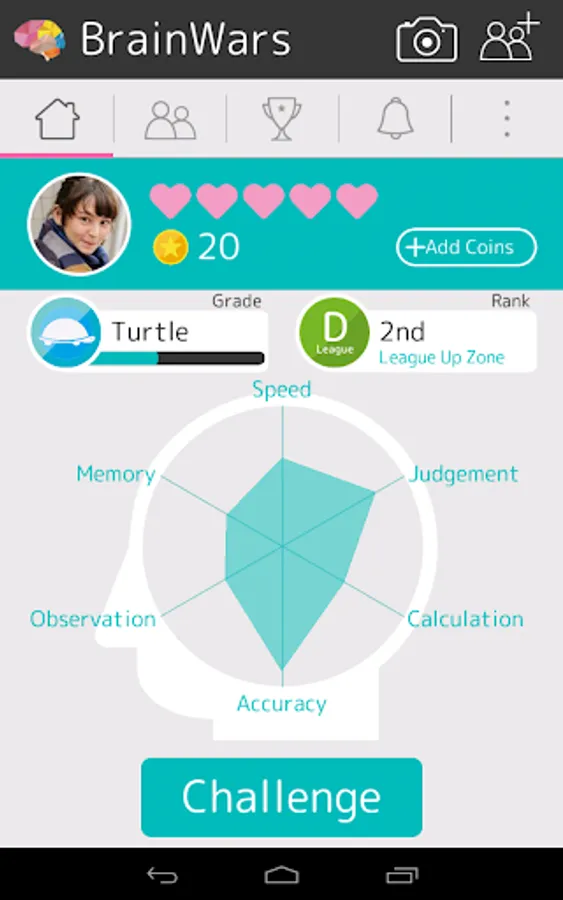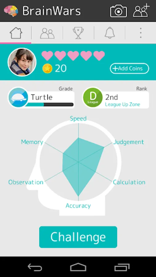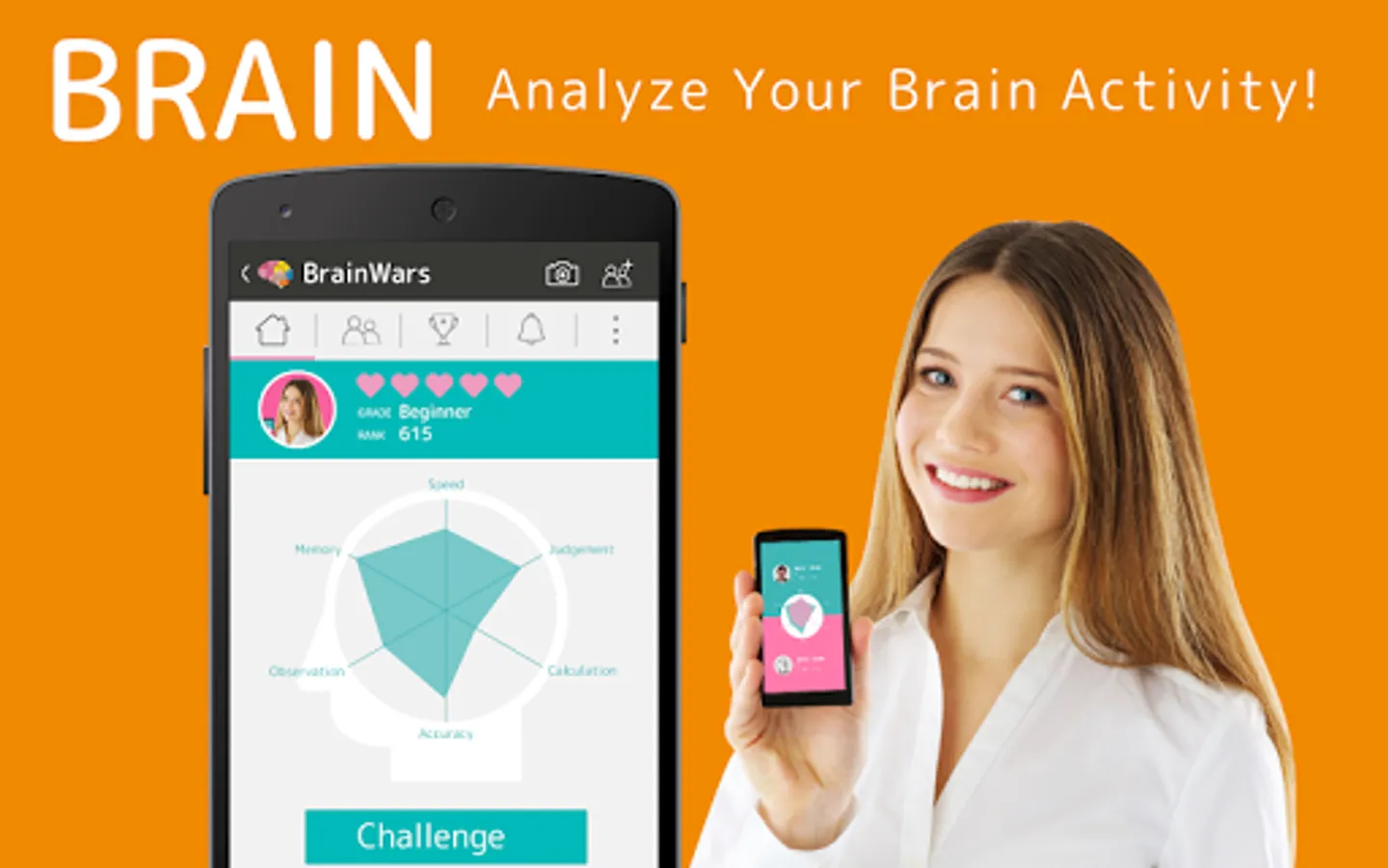 BrainWars is a mental concentration battle game for players from around the world. Players can participate in this through simple brain teasers and compete with each other. Brain Teasers do not require special knowledge so everyone can improve their brain function through repetition and adaptation.