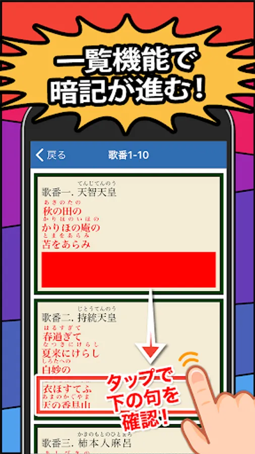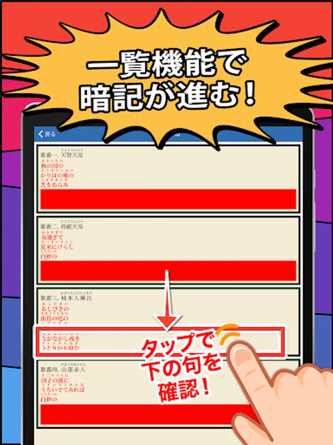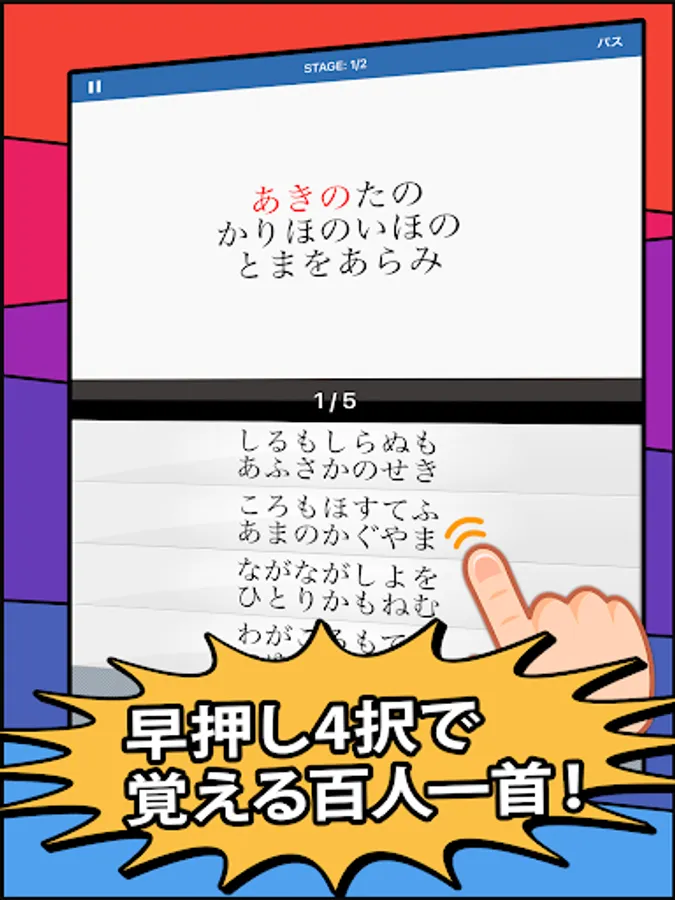First, let's memorize the combination of the top and bottom phrases of Hyakunin Isshu while tapping.
