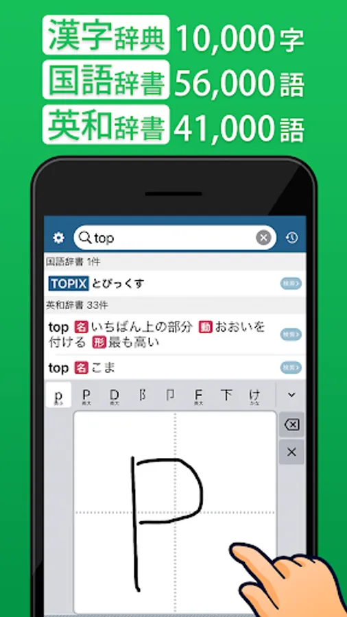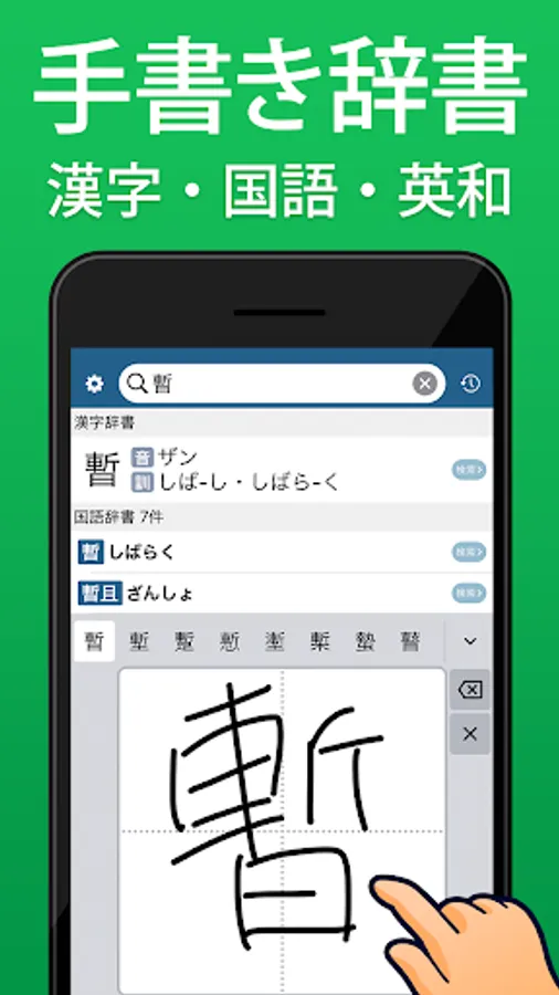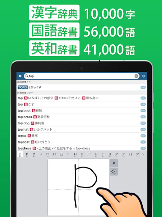 It is a convenient free dictionary application that can be used not only as a handwritten kanji dictionary, but also as a Japanese dictionary and an English-Japanese dictionary.