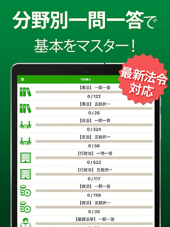The ultimate administrative scrivener problem collection app! From the basic one-question answer, 5 choices by field, and 8 years of past question exercises, there are plenty of 2159 questions!