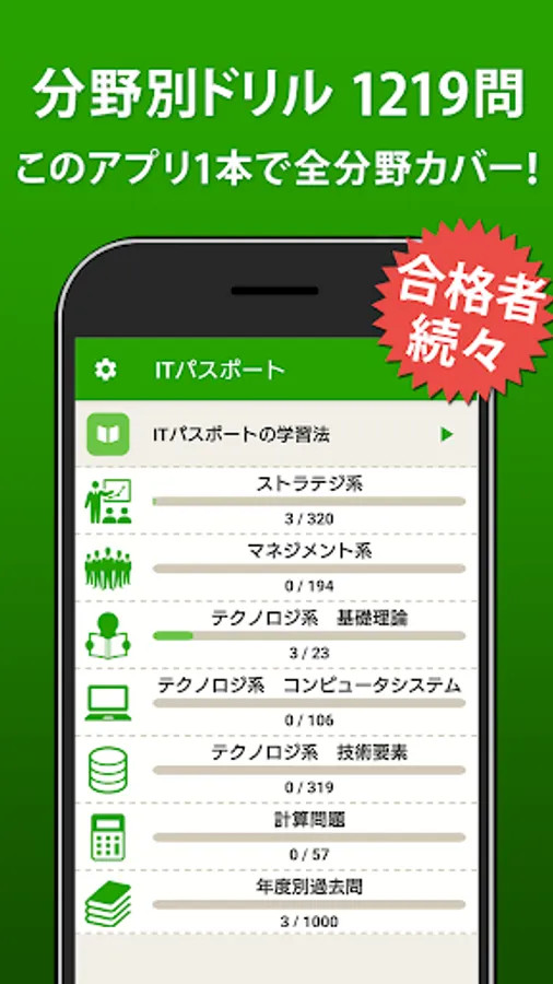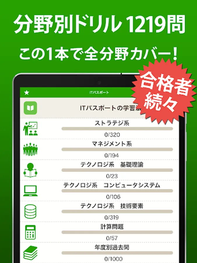 IT Passport, the ultimate free app! Includes drills by field and past questions by year, all 2419 questions.