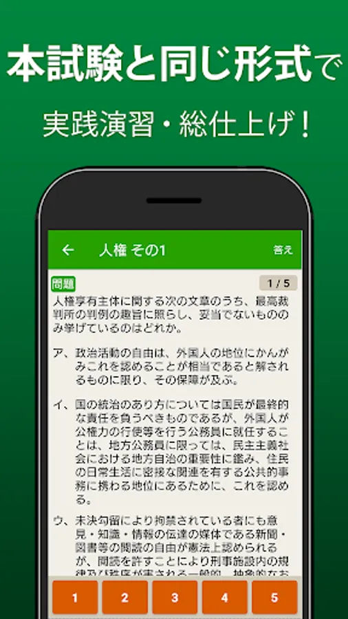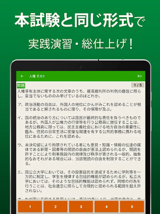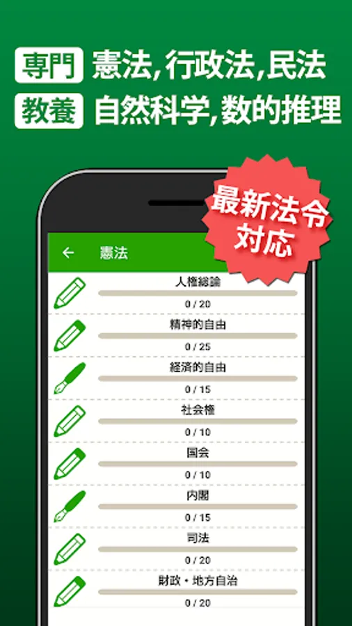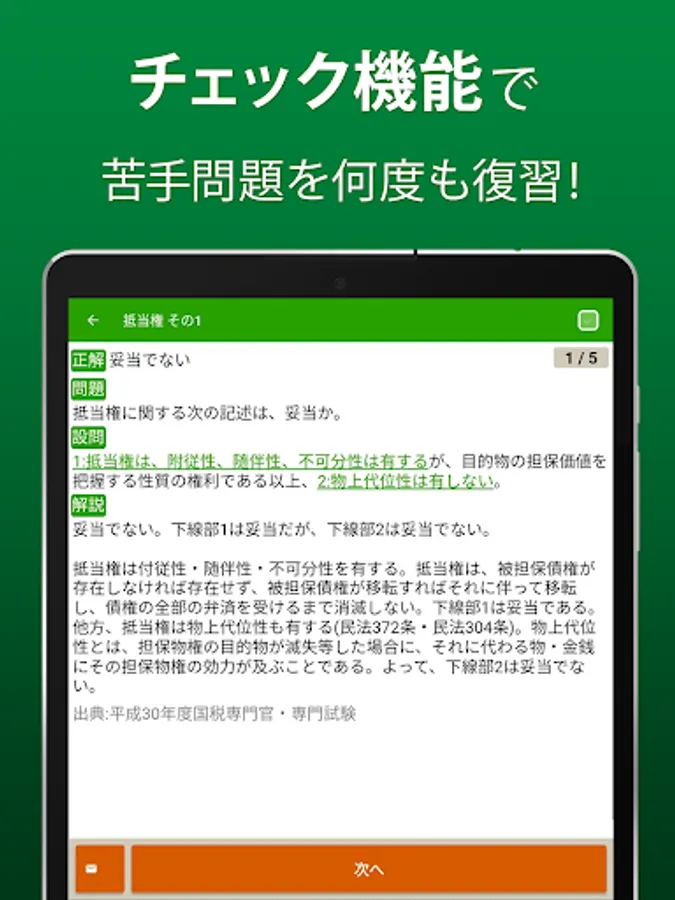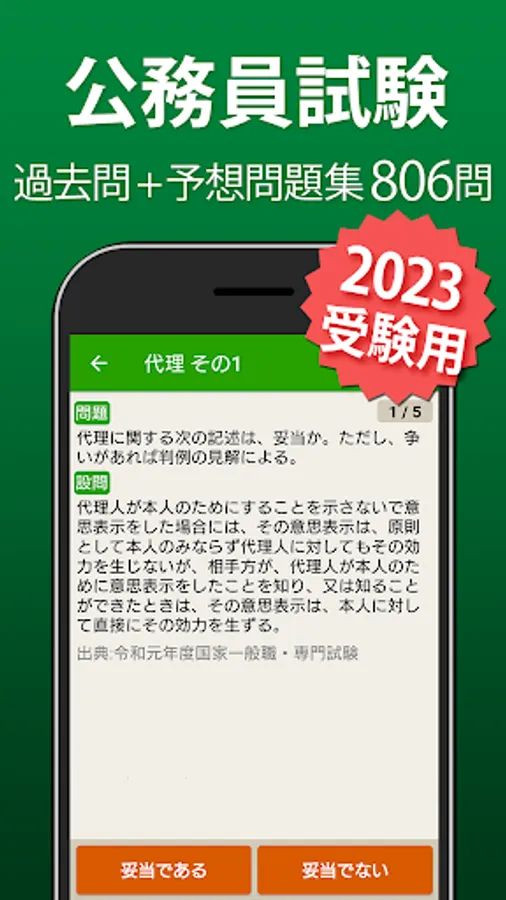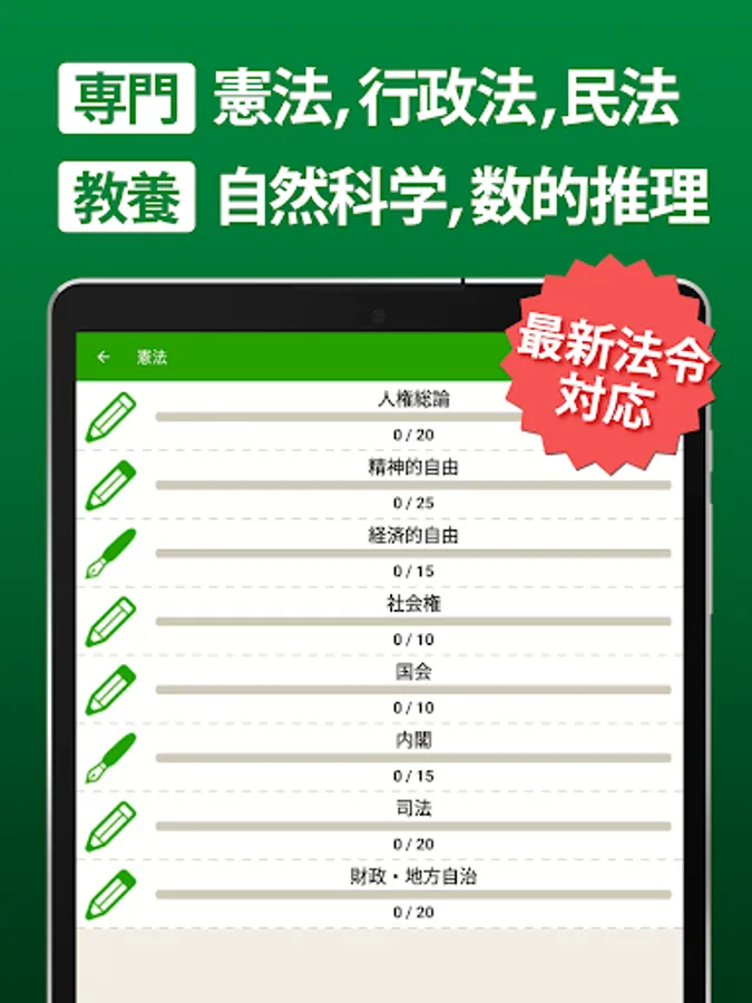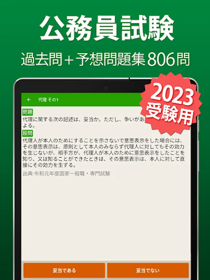 The ultimate civil service exam preparation app! Thoroughly study "Constitution", "Administrative Law", and "Civil Law" with past questions and prediction questions.