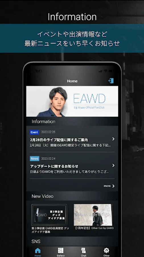 In addition to being able to check Eiji Akaso's information such as event information and each SNS from one app,