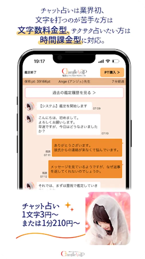 You can also chat and fortune-telling with Camille VoIP. From 3 yen per character, you can consult more at a price that is more affordable than telephone or live fortune telling. If you are a member, the history of chat fortune telling is very popular because you can read it later. There is no charge for text such as greetings, so please feel free to use it.
