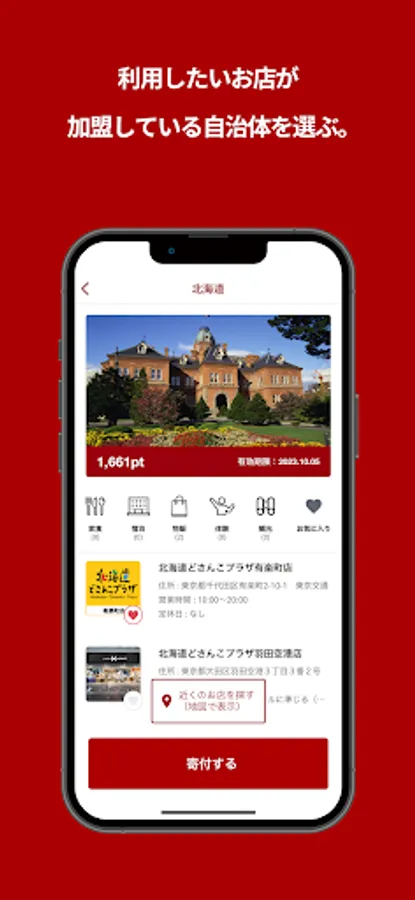 ・ Hometown tax, shop search, and point payment are all completed with the app!