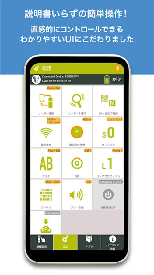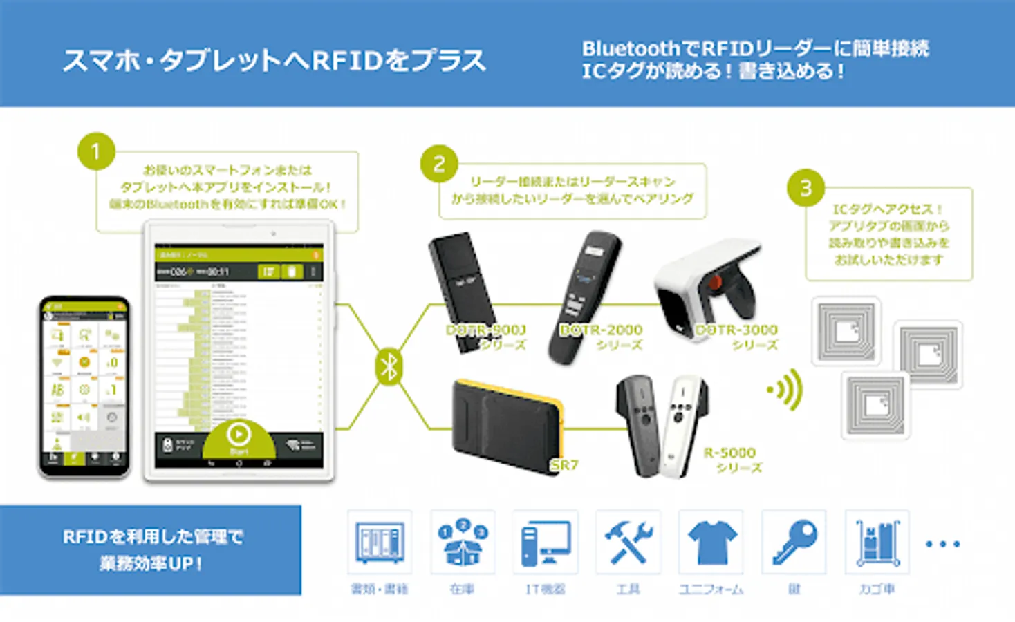 This is a dedicated app for the UHF band RFID reader/writer sold by our company that easily adds RFID functionality to smartphones and tablets.