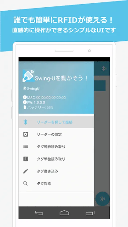 "Let's move Swing-U!" Is an application dedicated to Swing-U (https://rfid.tss21.co.jp/product/swing-u/).