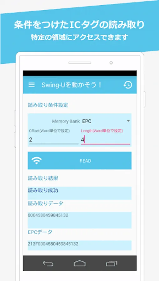 2) Set the "reading conditions (Memory Bank, Offset, Length)" of the IC tag.