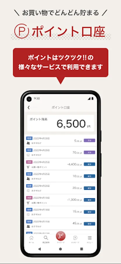 Please present the app's "My Code" at the time of payment when shopping or using services at participating stores. You can use the Tsukutuku!!! points (1pt = 1 yen) in your point account. In addition, points will be added to the point account according to the amount of the payment.