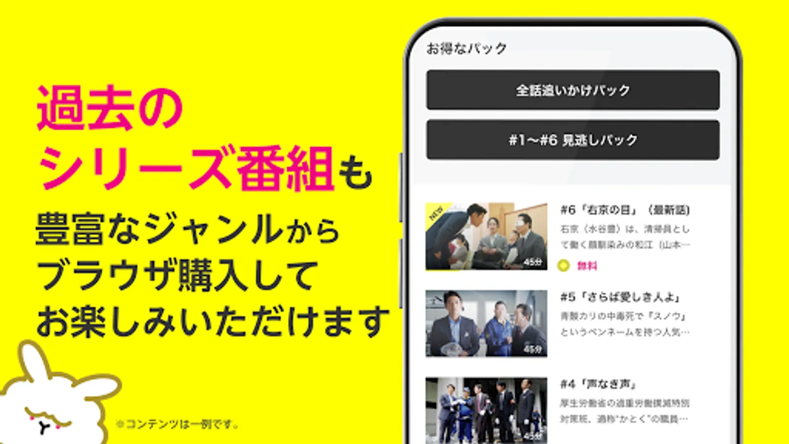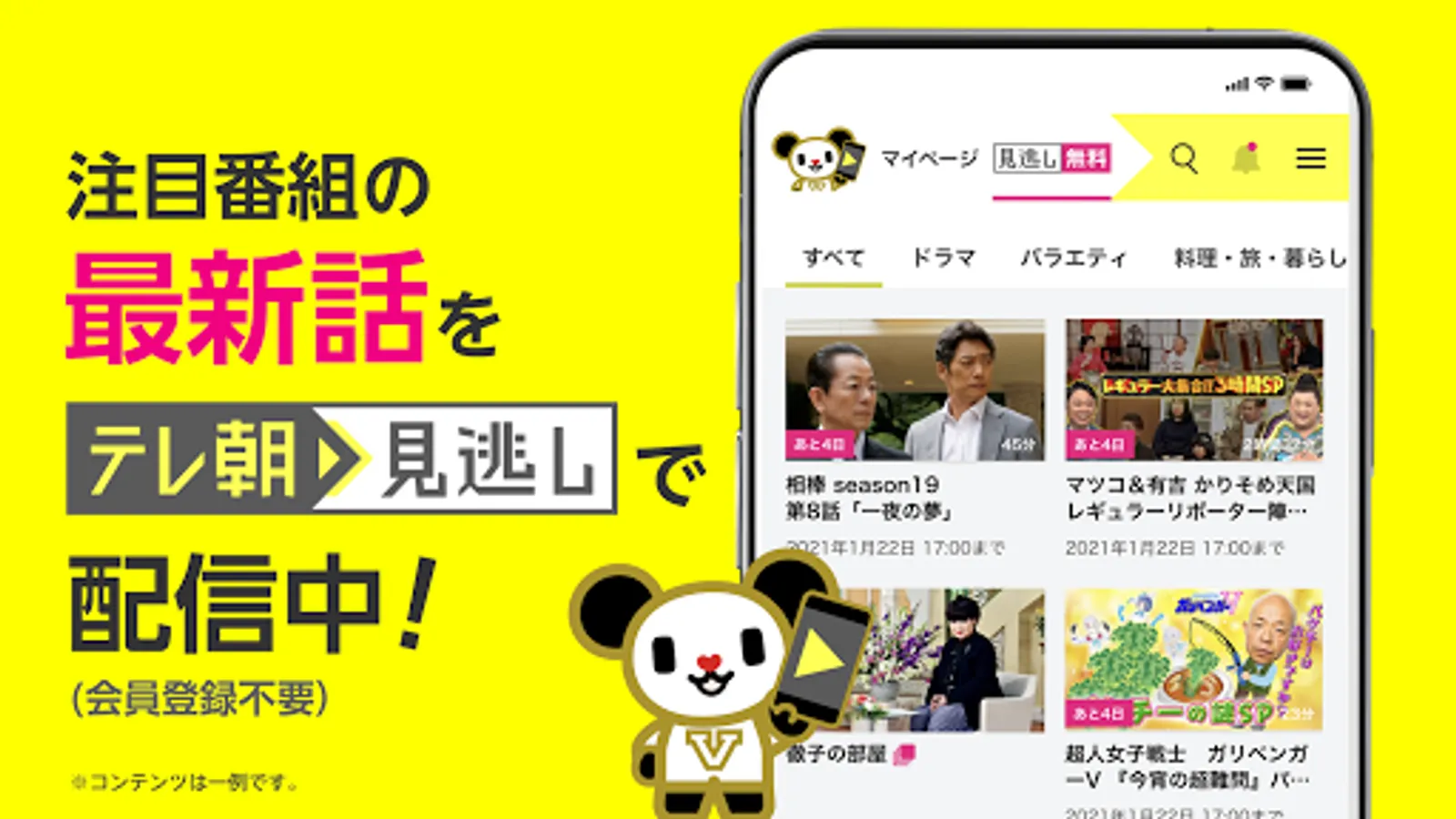 As the official video service of TV Asahi, "Tele Asahi Video" provides overlooked distribution and archive distribution of programs broadcast on TV Asahi terrestrial broadcasting, as well as distribution of original programs and live distribution of sports and events. The distribution titles cover a wide range of genres such as dramas, variety shows, anime heroes, and idols. A full story pack of all episodes chasing a great deal on programs broadcast on TV Asahi terrestrial broadcasting is also available. You can enjoy your favorite programs from our extensive free and paid content lineup.
