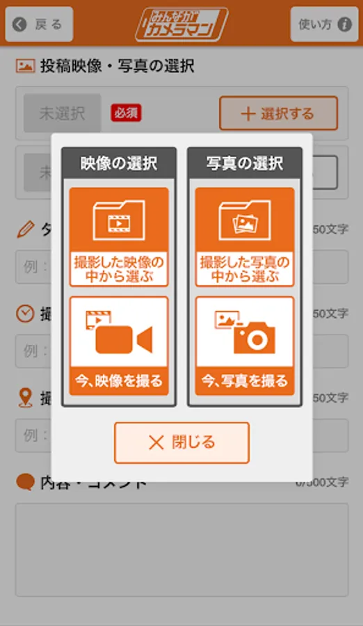 あなたのまわりで起きたことを、いち早く「映像」や「写真」で投稿してみませんか。