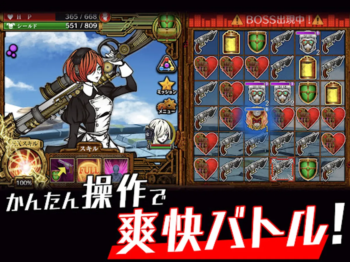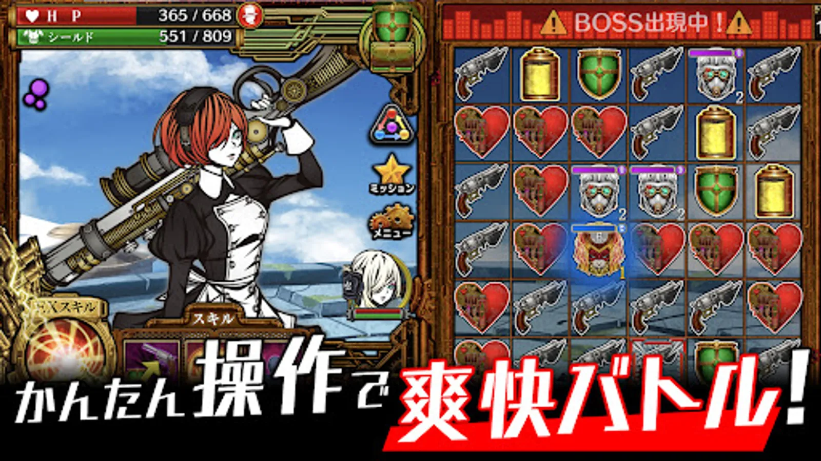 A strategic puzzle RPG where you can enjoy a retro and steampunk world while reading the story of the characters appearing in the flowing illustrations.