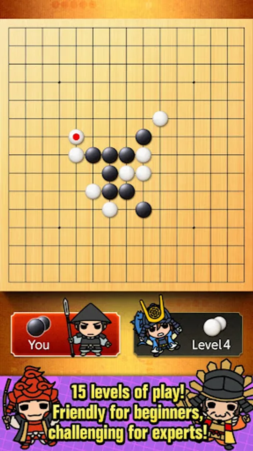 We have provided 15 levels of play and the highest level 15 is as strong as the best human player on the planet. The lower levels are perfect for beginners so enjoy and learn the game by beating the AI.