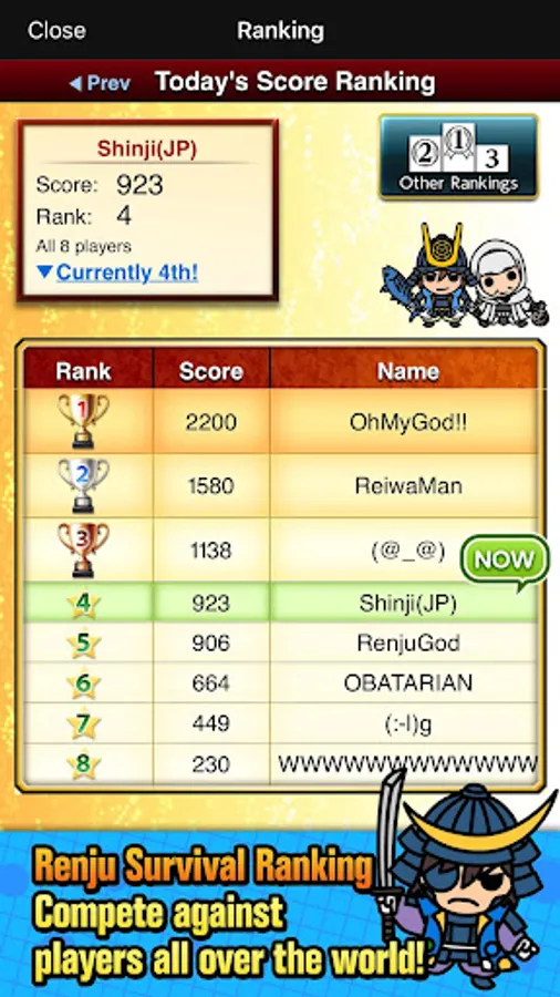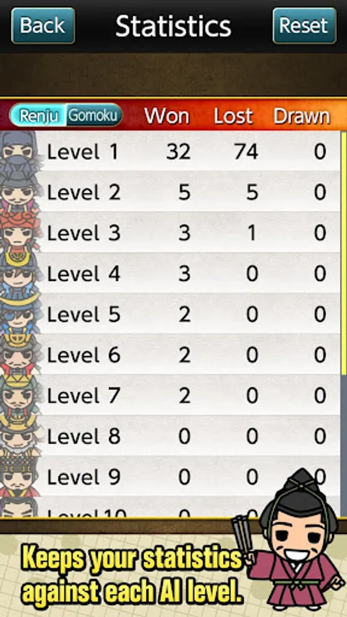 Play consecutive games against the AI and beat it to achieve a high score. You can compete against Renju players from all over the world.