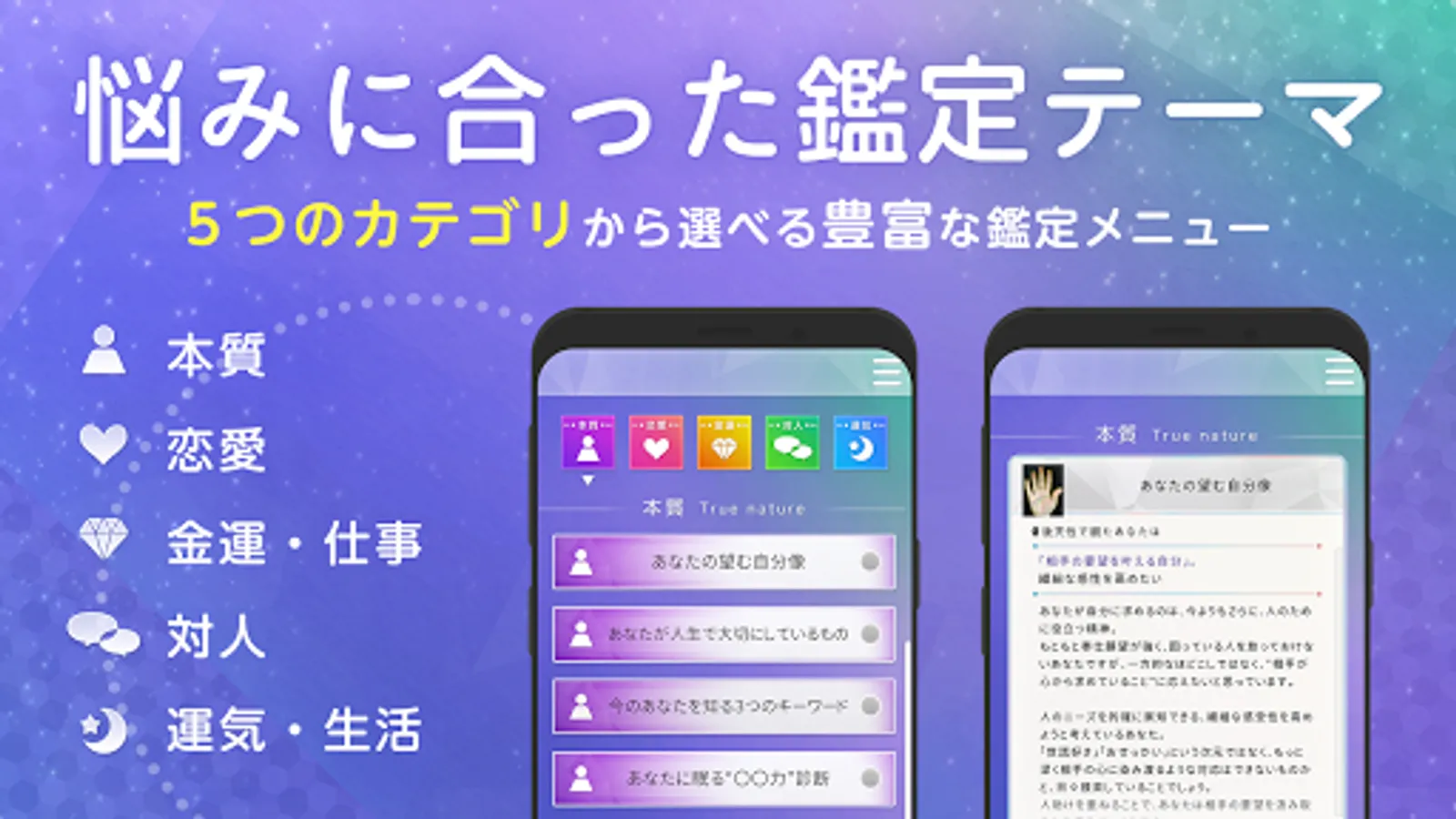 It is an application that anyone can do full-scale "palmistry" anytime, anywhere.