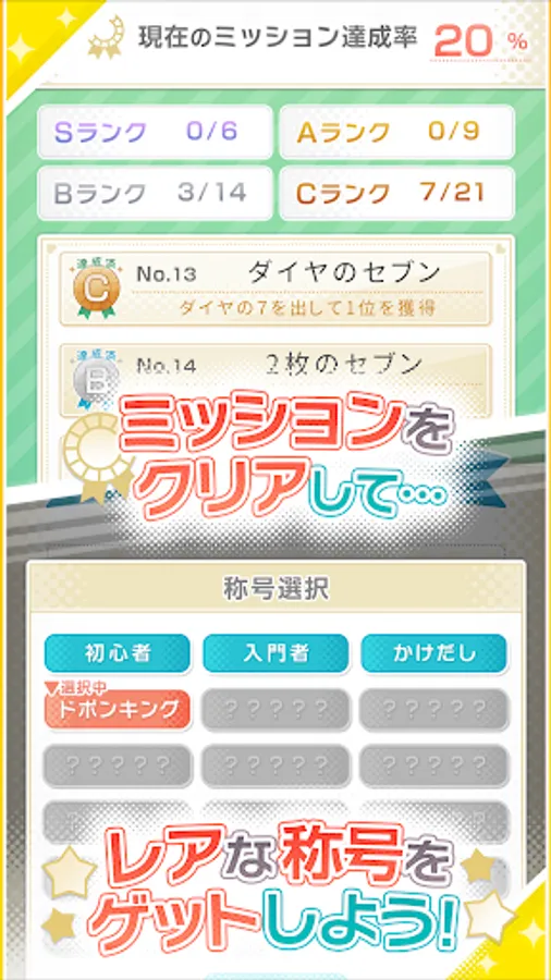 As you clear the missions in the game, you can earn titles according to the achievement rate. Are there some fierce missions that can only be accomplished by people who aren't lucky?