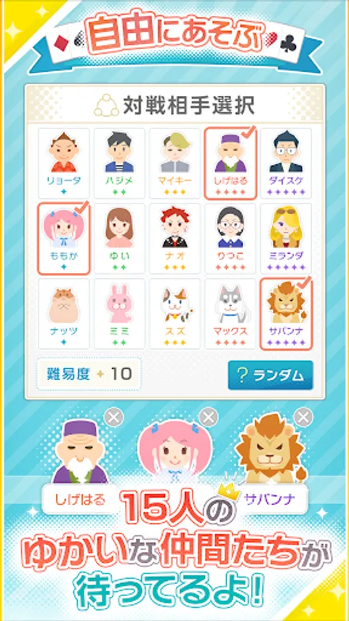In "Play freely" mode, you can choose your favorite character from the 15 opponents available and play.