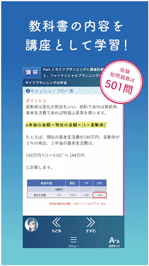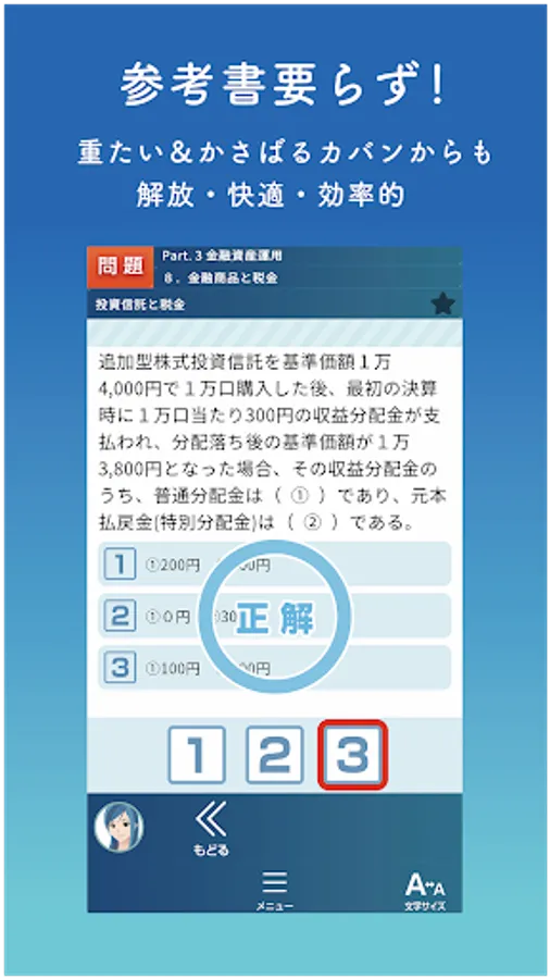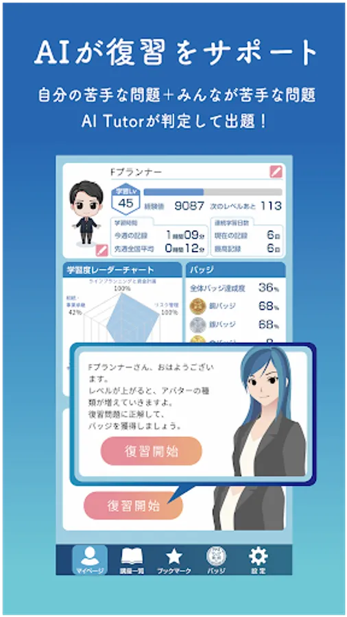 The "Sumagaku" app that combines a textbook and a workbook for passing the FP3 level. Furthermore, AI supports review.
