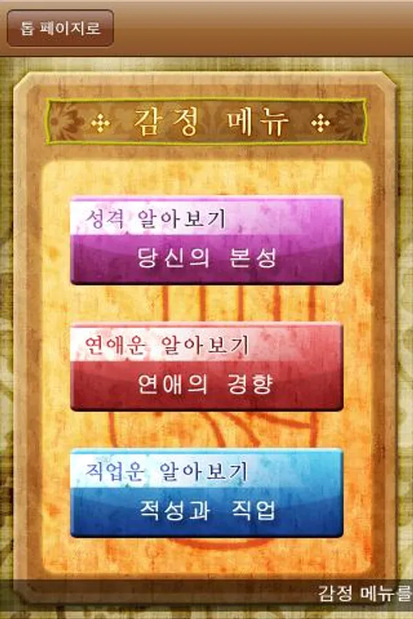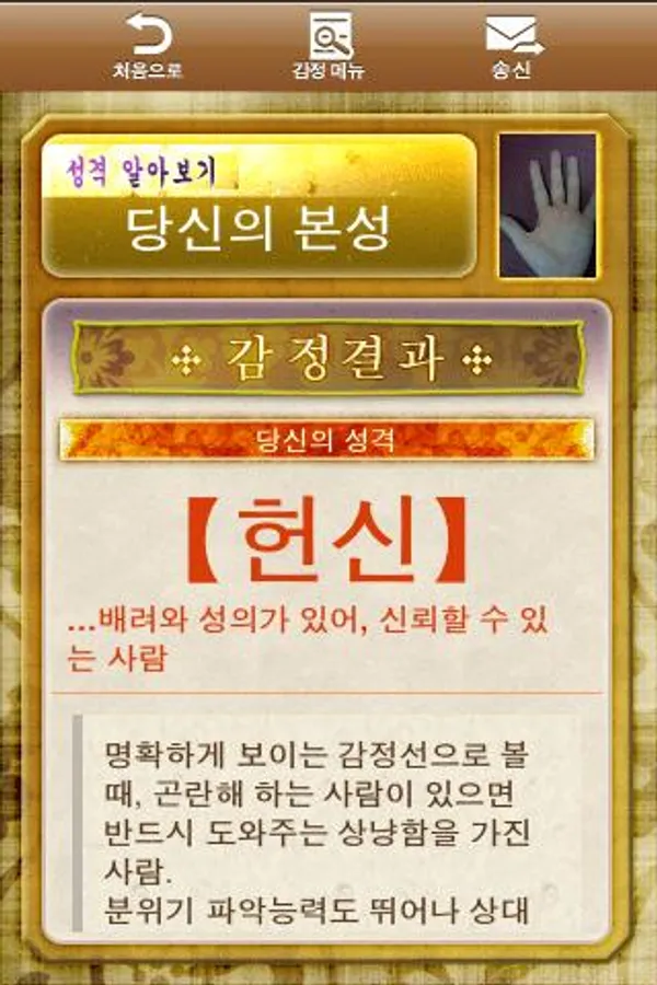 ● on the spot "nature," "love," "work", and you decipher the nature and destiny, and is displayed.
