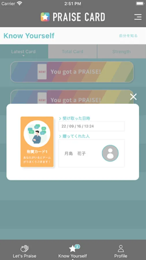 It is an application that can easily convey praise by giving a praise card to the other party.