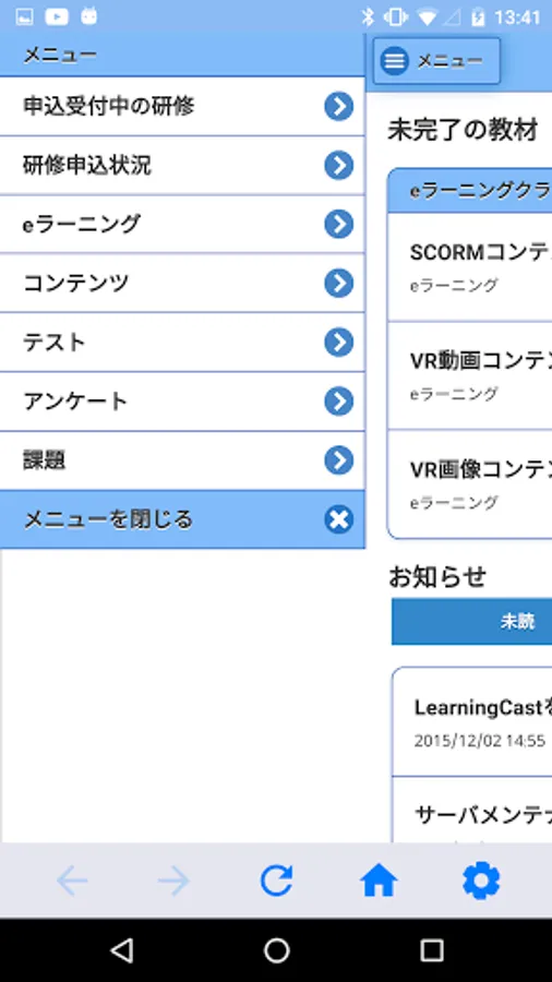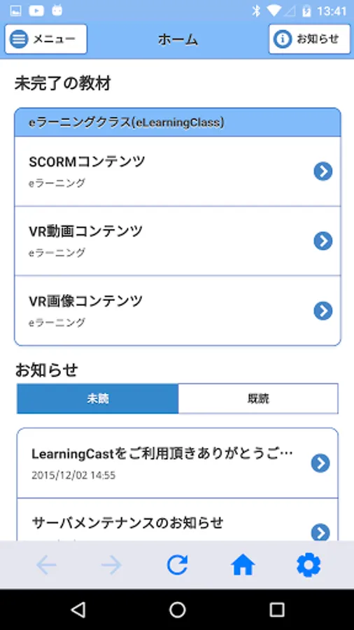 It is an application for LearningCast users, a learning management and information distribution service. In addition to the functions that you normally use in your browser, we have added a VR compatible (viewing VR images and videos) function.