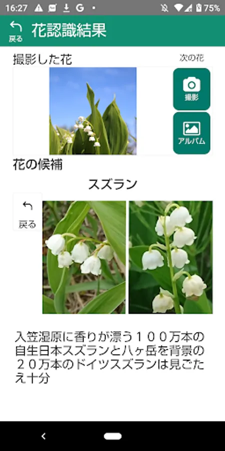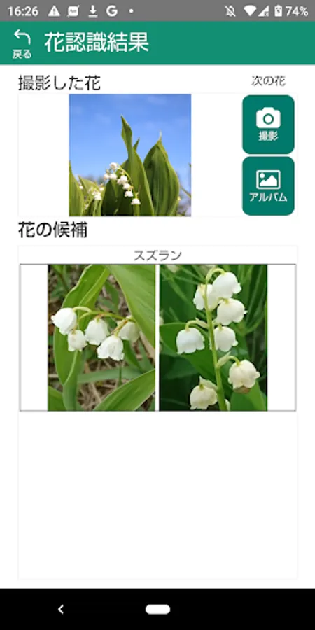 By taking a picture of a flower, the corresponding flower candidates are displayed.