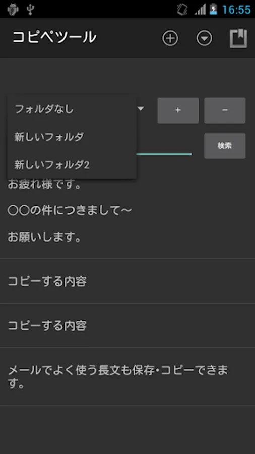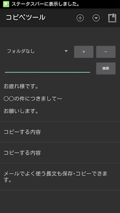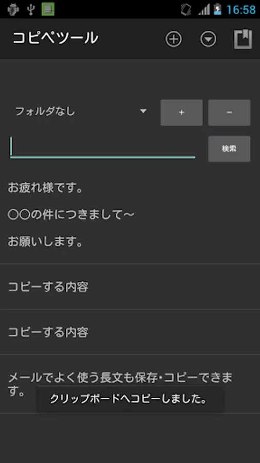 ・クリップボードへ作成したコピーデータをコピーする機能(長文も可能)。