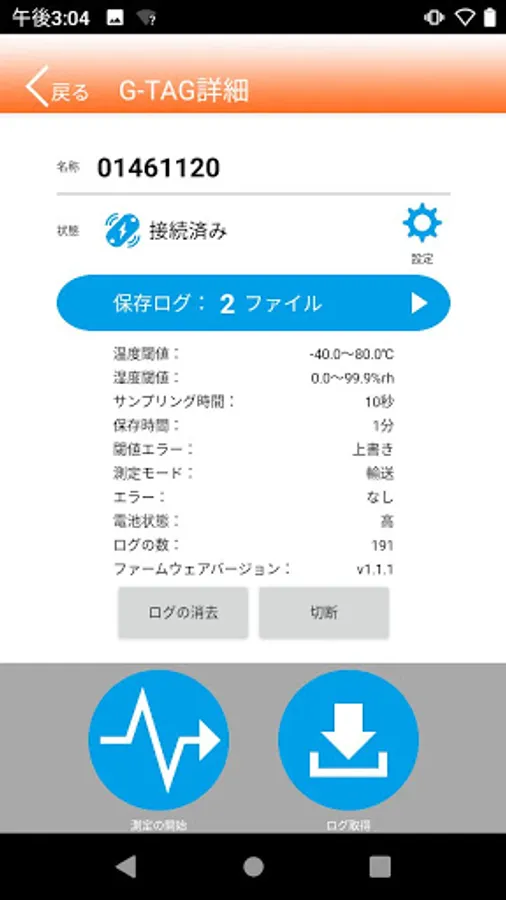 As a usage method, after starting this application, you can connect to a smartphone by pressing the BLE key on the logger body.