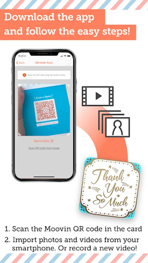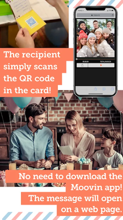 The Moovin App will guide you through the simple process to record, edit and upload your personalised video message to your Moovin card.