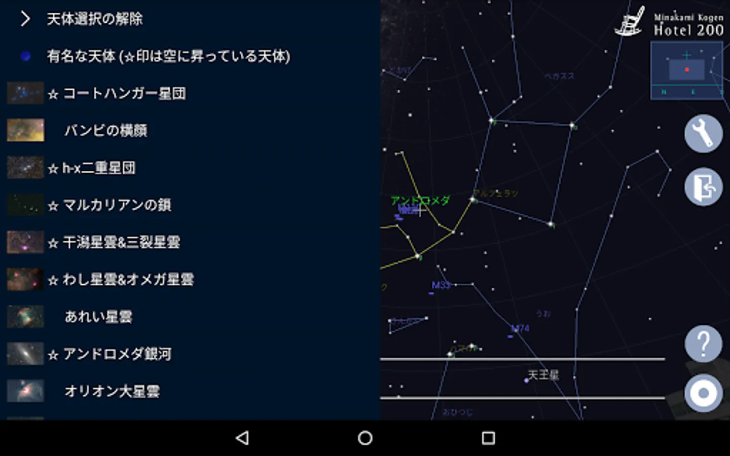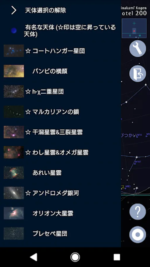 リアルタイムで、星座、星雲や銀河などの有名な天体、金星・木星・土星などの惑星を見つけることのできる星座観察支援アプリです。