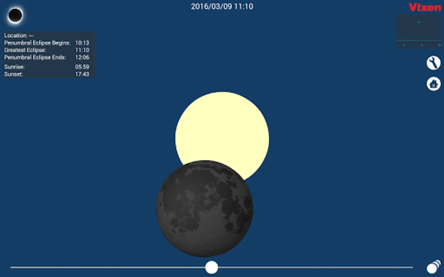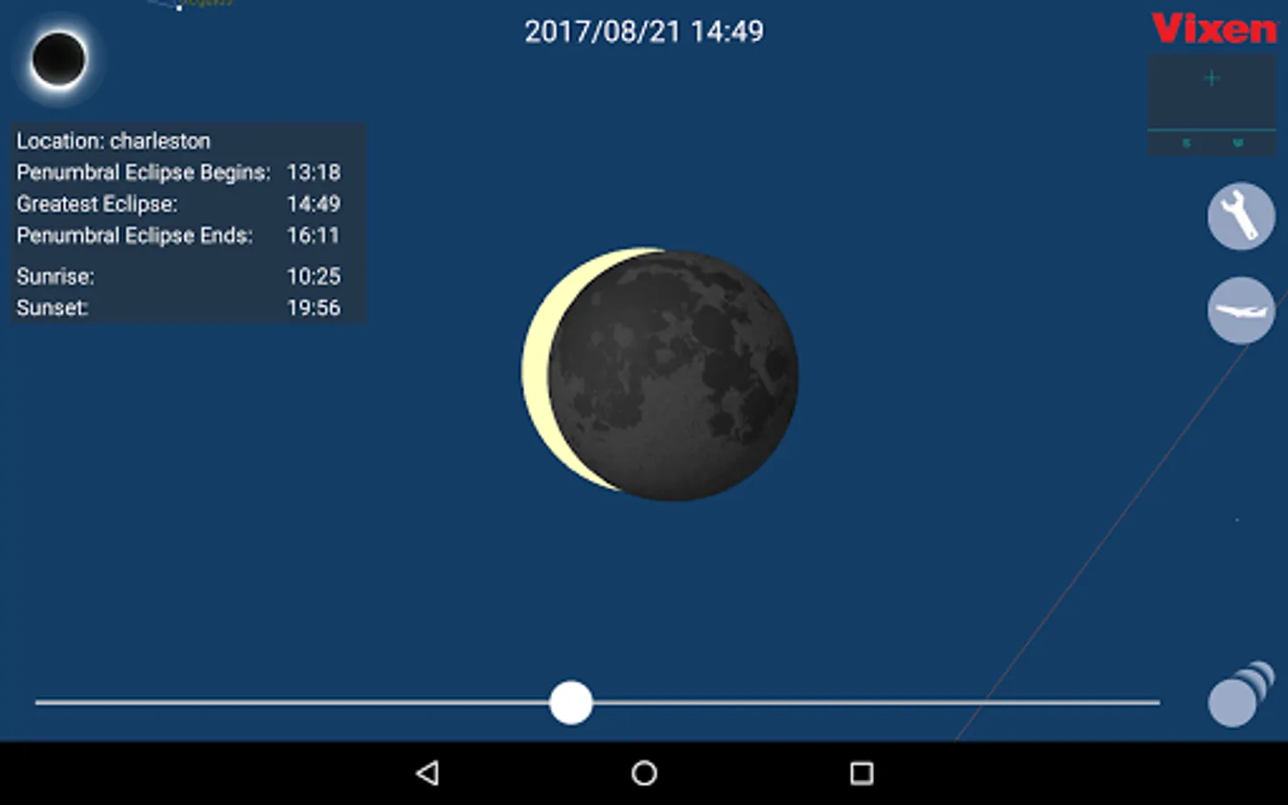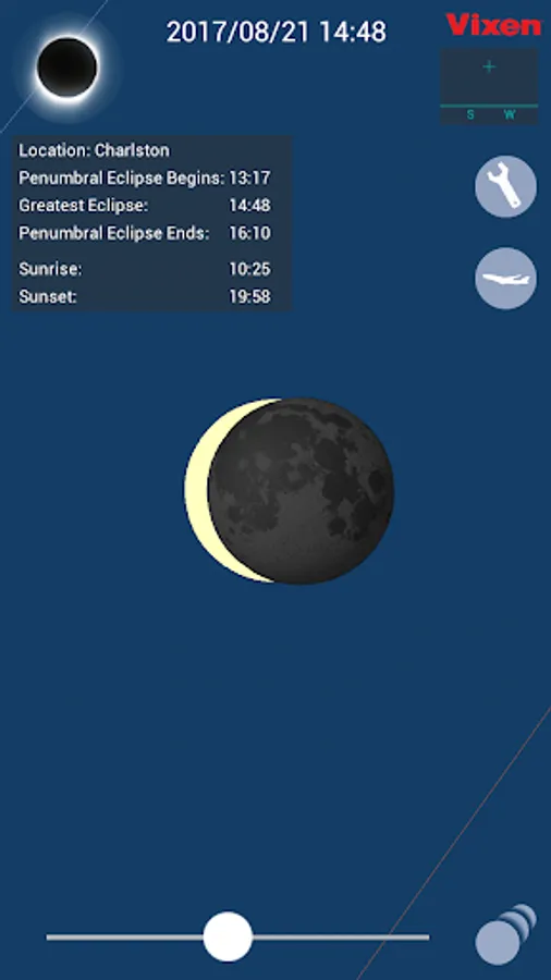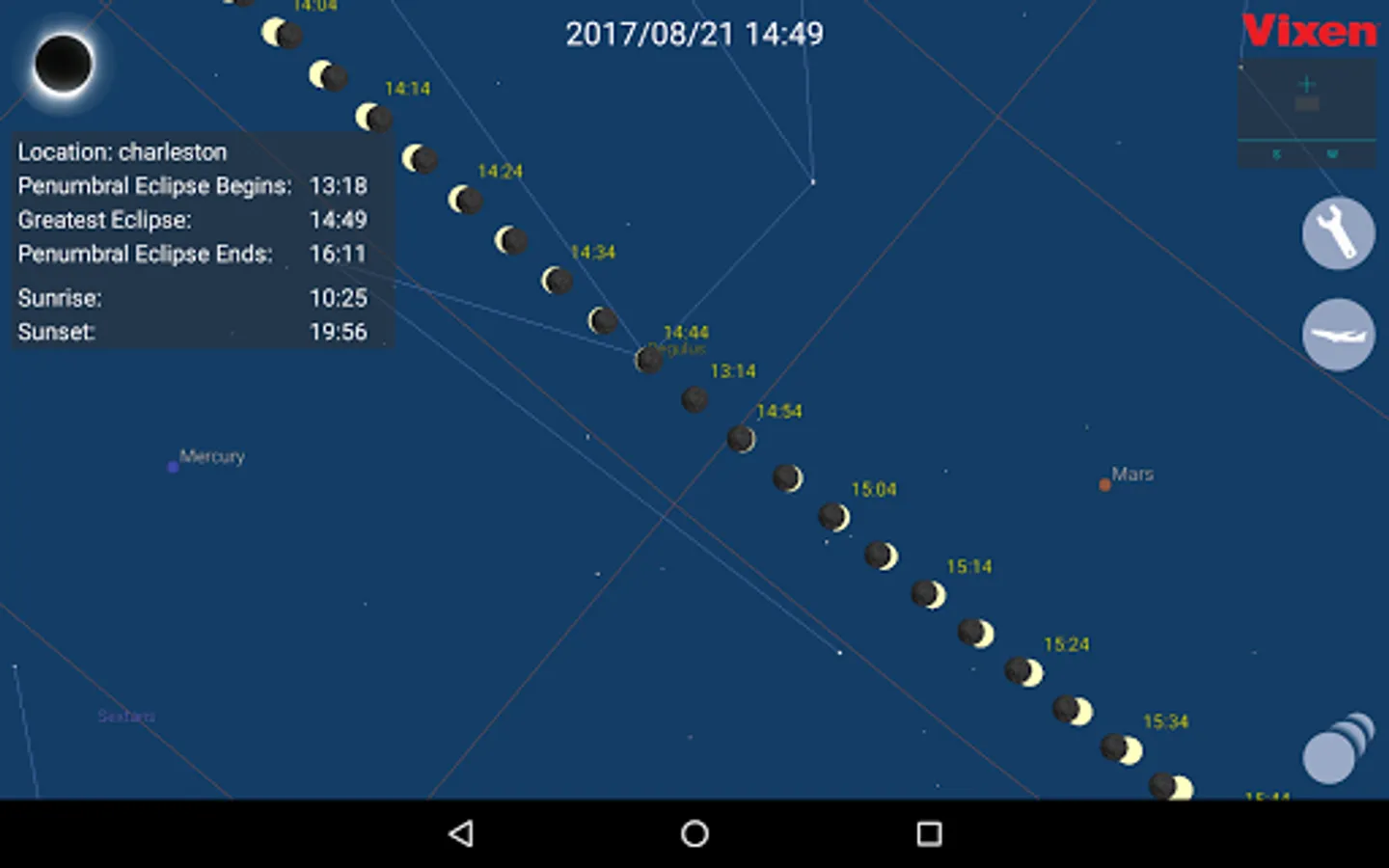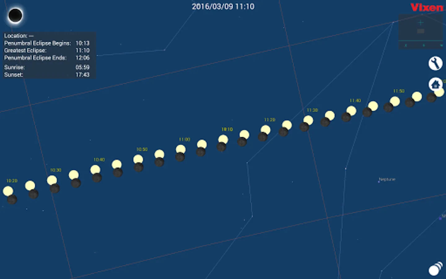 Sequential images of the solar eclipse will be displayed in the appropriate order when you tap on the eclipse thumbnail images icon on the lower right of the screen.