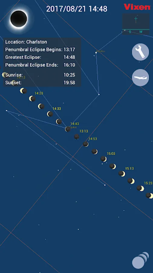 The Solar Book will show you a star chart of the sky at your place of observation if the solar eclipse is not selected.