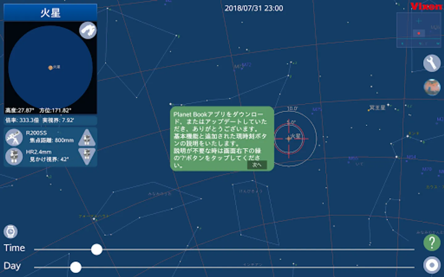 The Planet Book, because product name astronomical telescope and eyepiece Vixen is registered, combining choose any astronomical telescope and the eyepiece from the simulation whether the visible planets How big There is also the ability to.