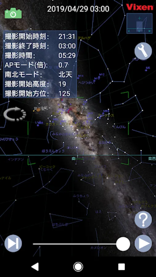 Vixen of time-lapse app (TimeLapse Book) is a movie simulator of the starry sky of the time-lapse photography.
