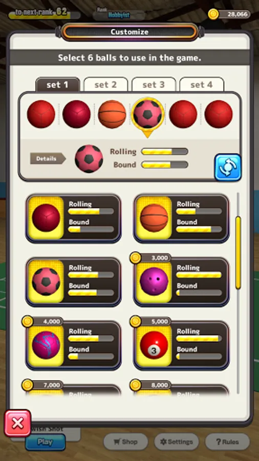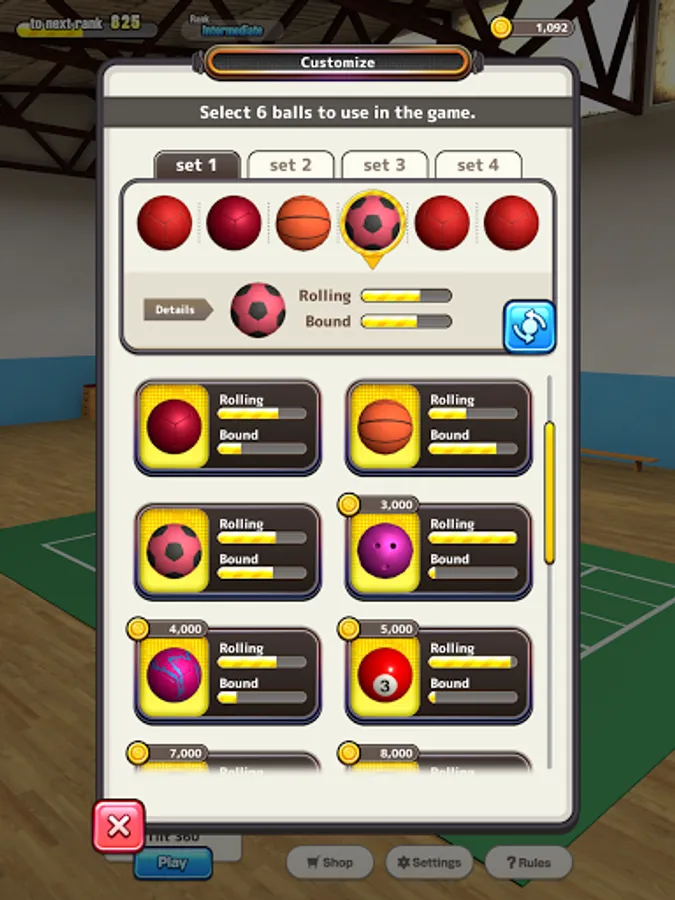 - 18 distinctive balls