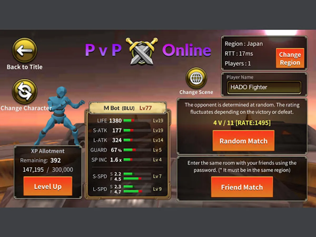 - HADO Cup (vs CPU match) has eight difficulty levels