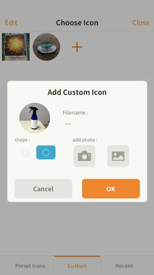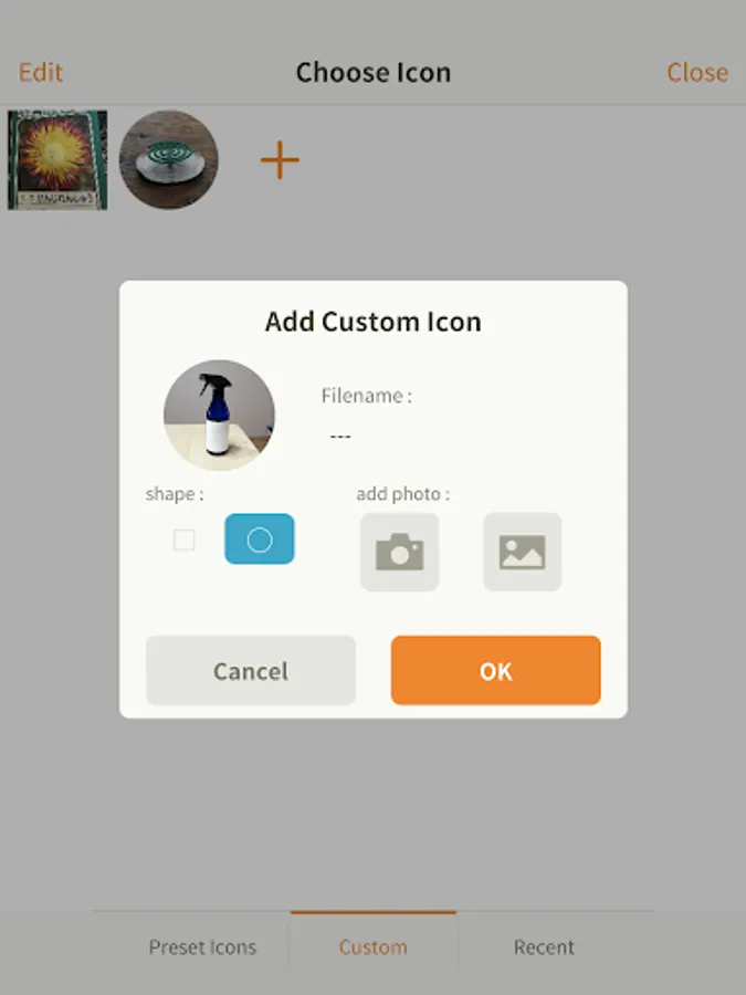 The app features more than 600 icons. If you don't find an appropriate icon, you can take a picture and create your original icons.