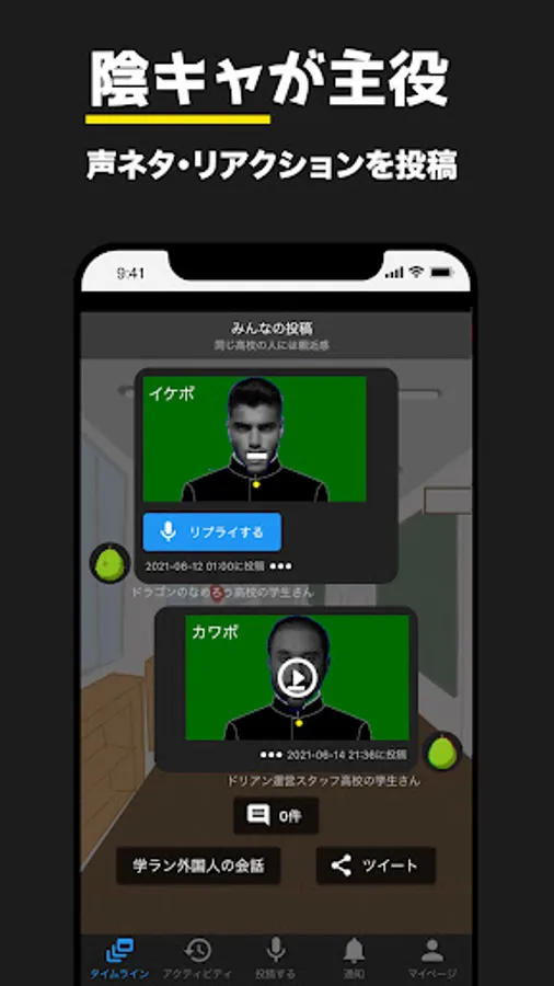 Although it is an SNS, it is anonymous, so you cannot meet in the real world. You can get to know the Internet people through audio and video posting.