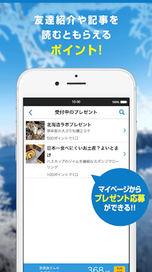 記事を読んだり、アプリを友達に紹介したり、様々な状況に応じてポイントが付与されます。