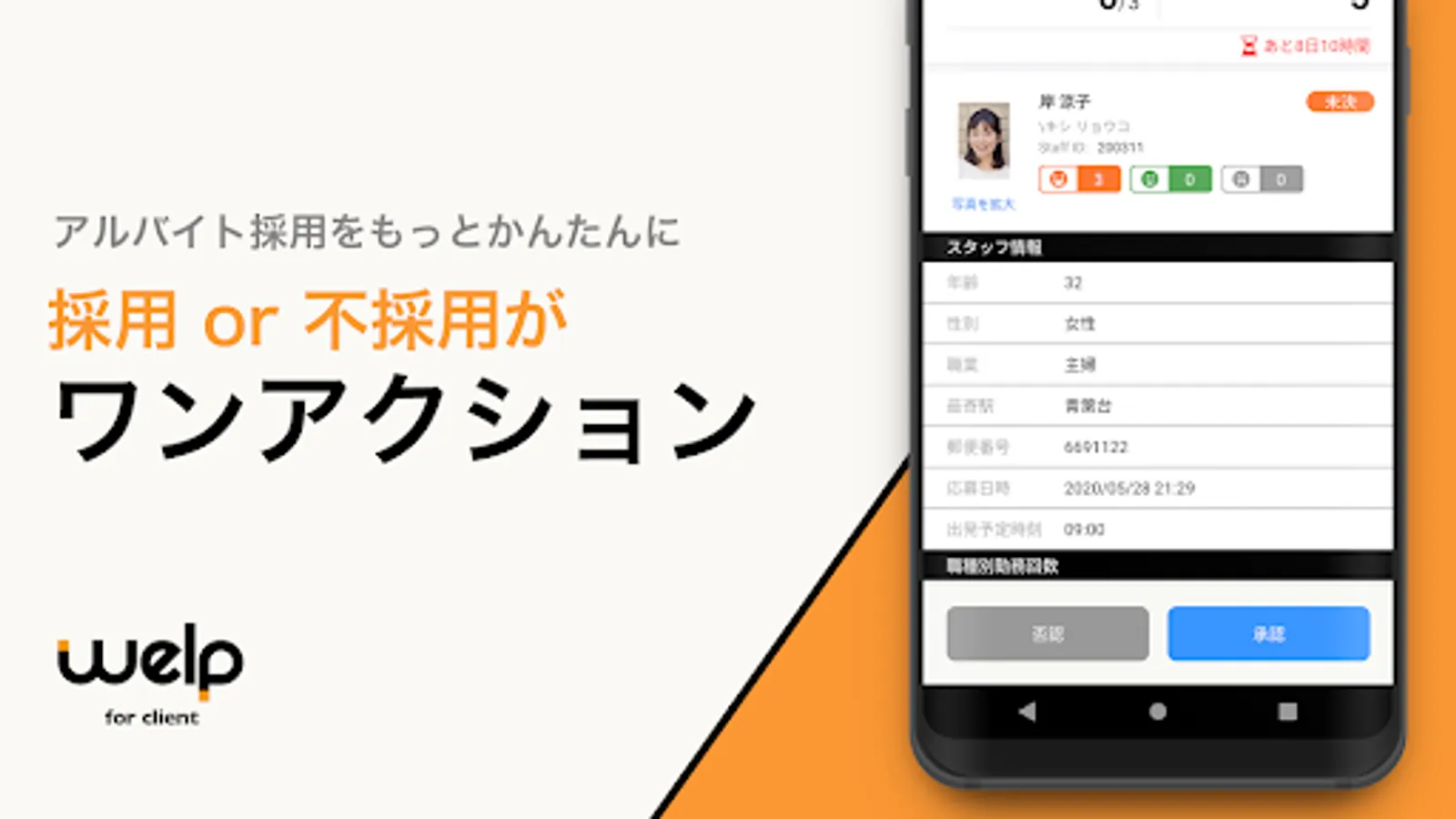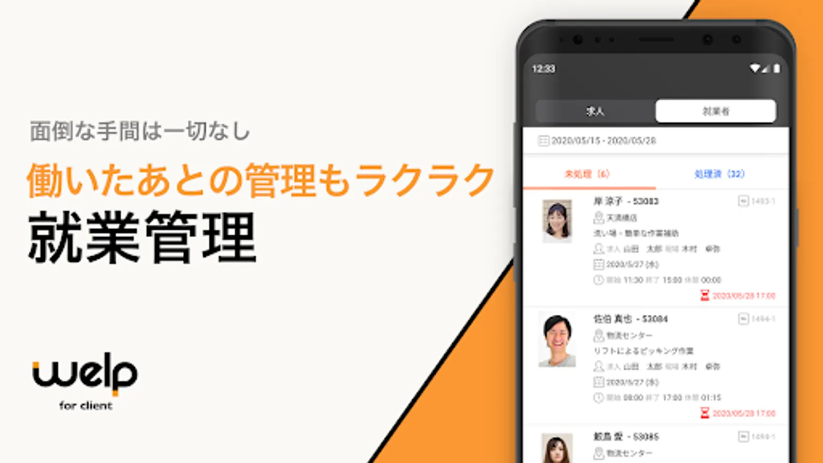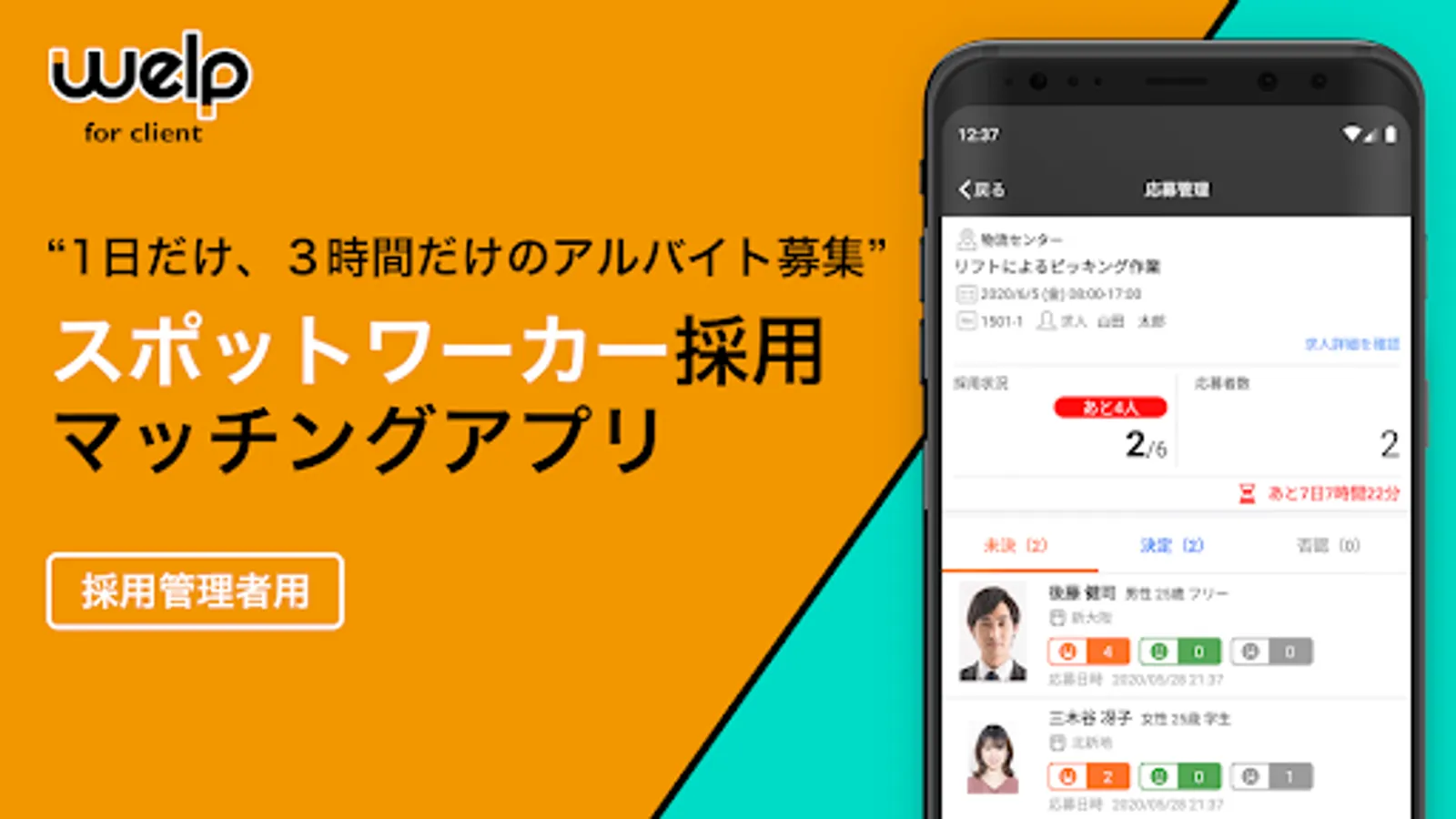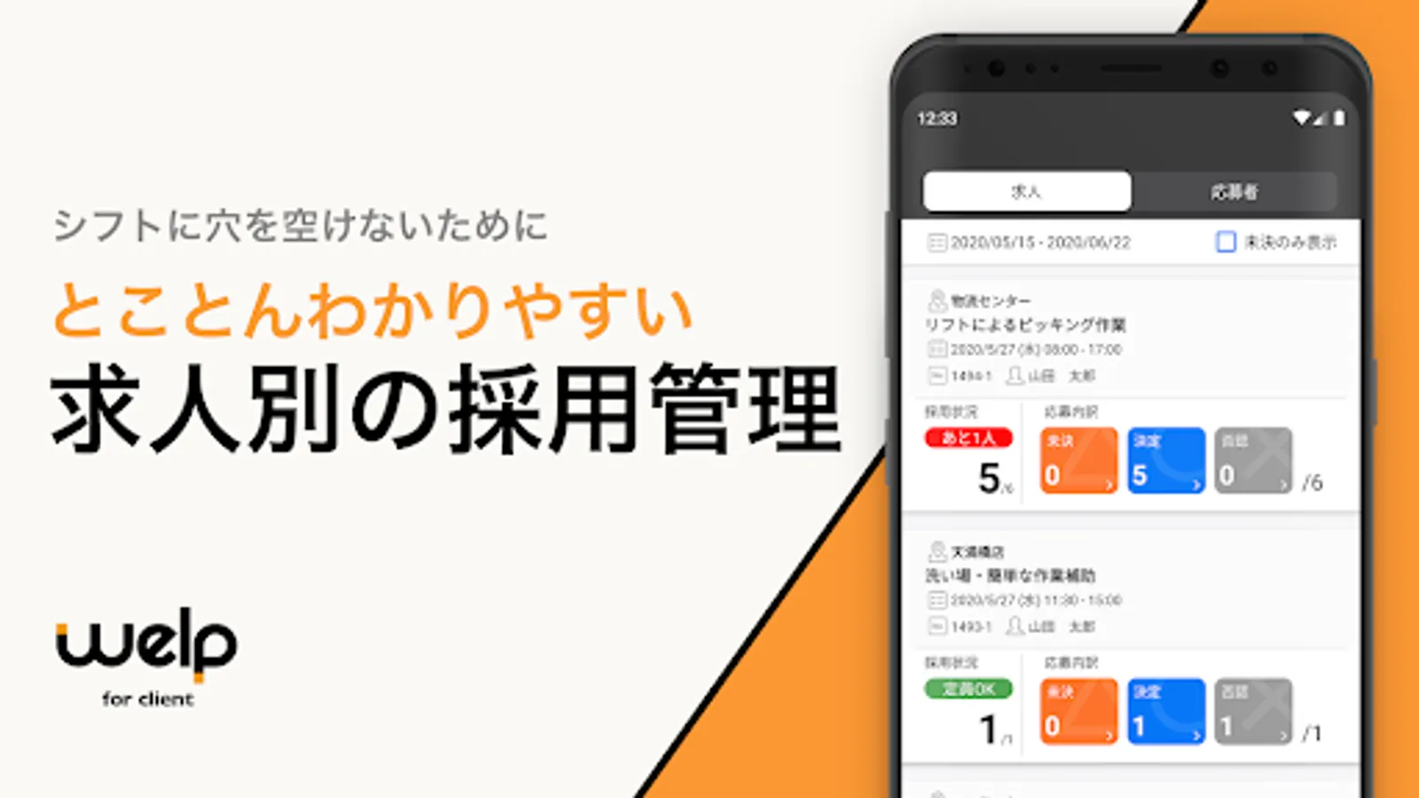 Welp for Client is a recruitment management app for those who are in charge of hiring part-time workers.