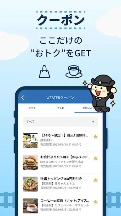 ・Various coupons that can be used near the station you are going to will be distributed, and you can easily use them with just your smartphone.