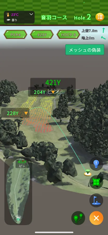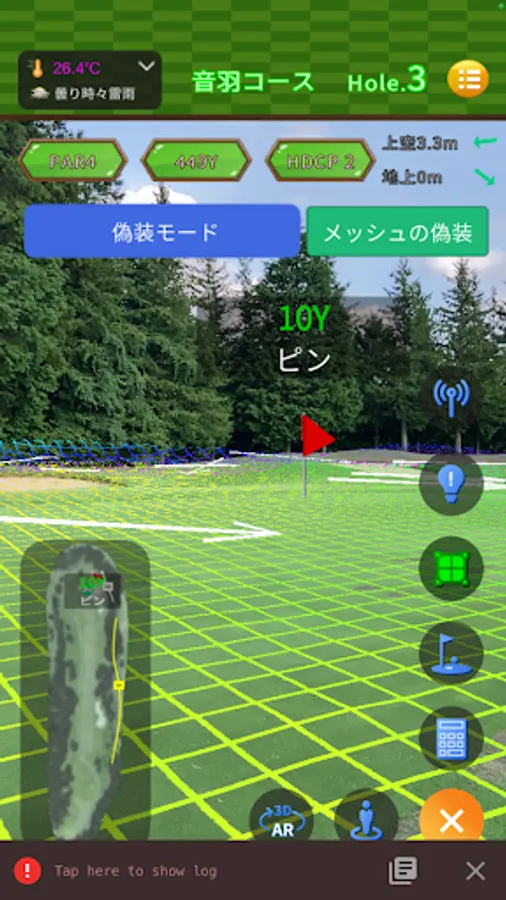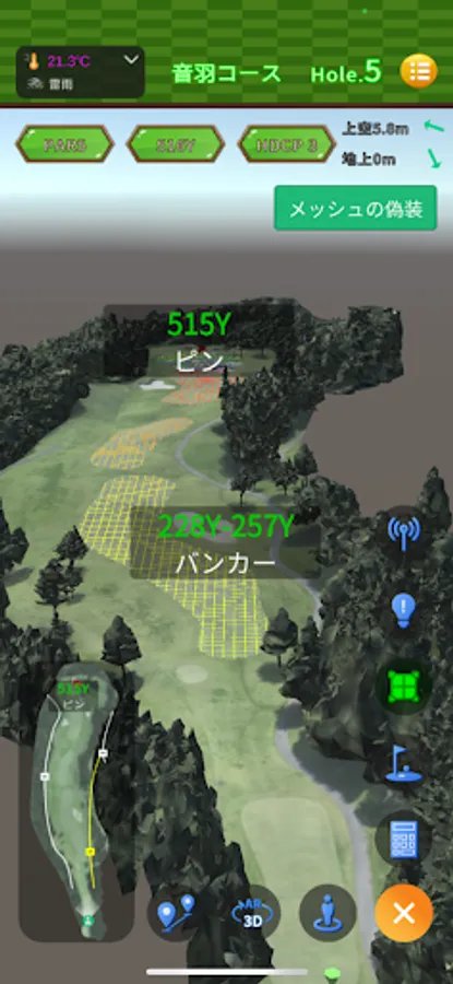 Accurate terrain data obtained by 3D scanning of actual golf courses is reflected, and simulations can be confirmed not only by AR display but also by 3D model display.