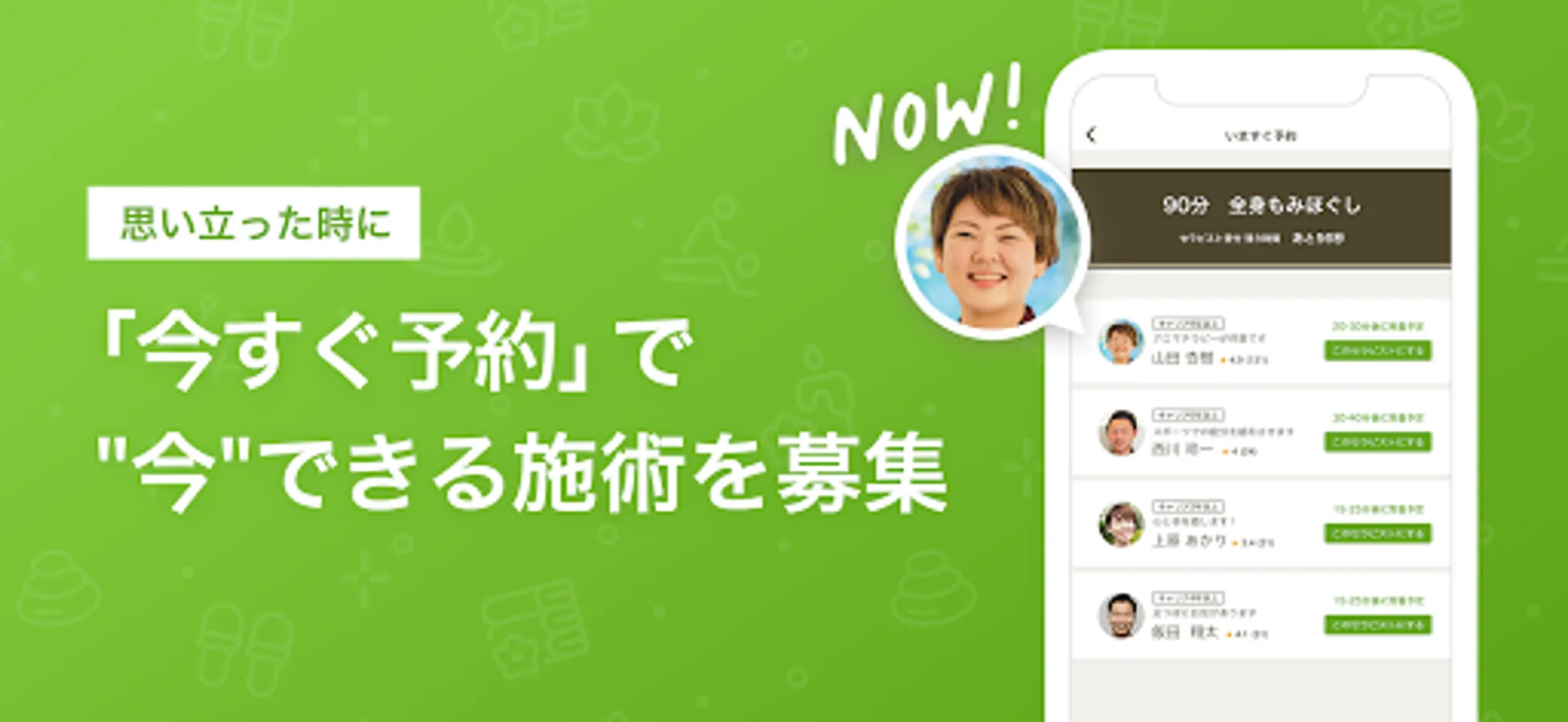 This is a function to recruit practitioners near you when you want to receive relaxation right away.