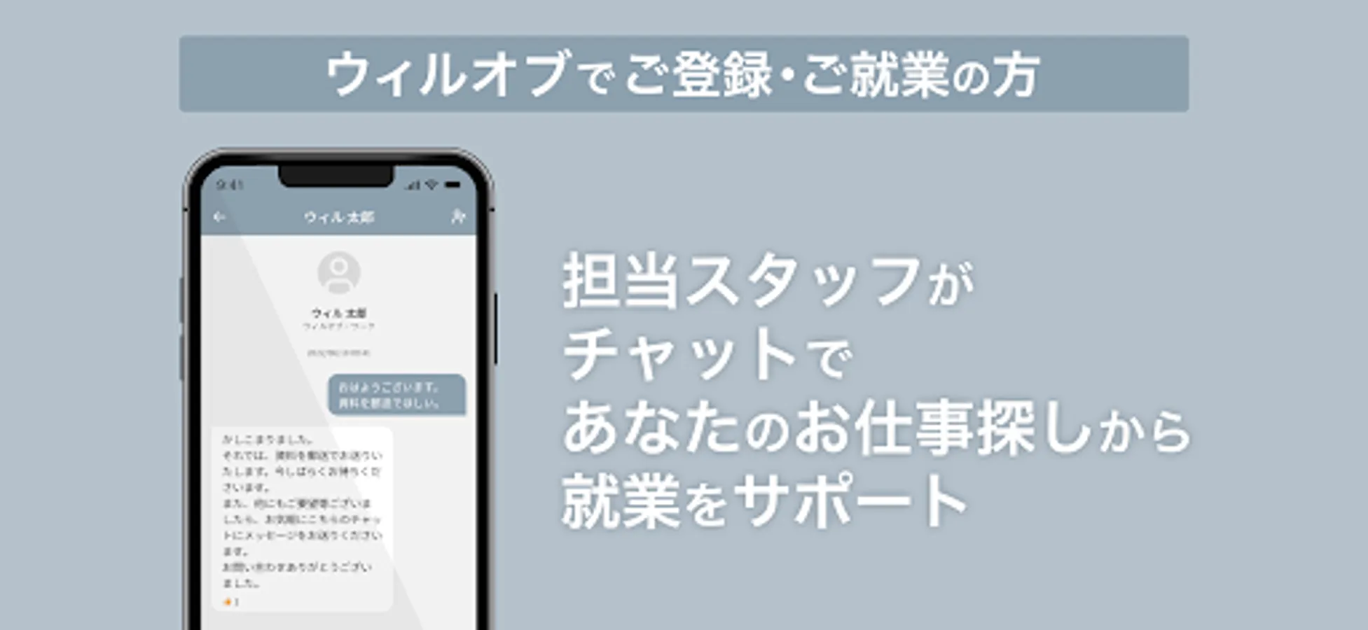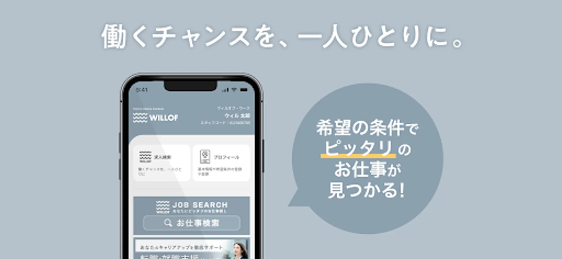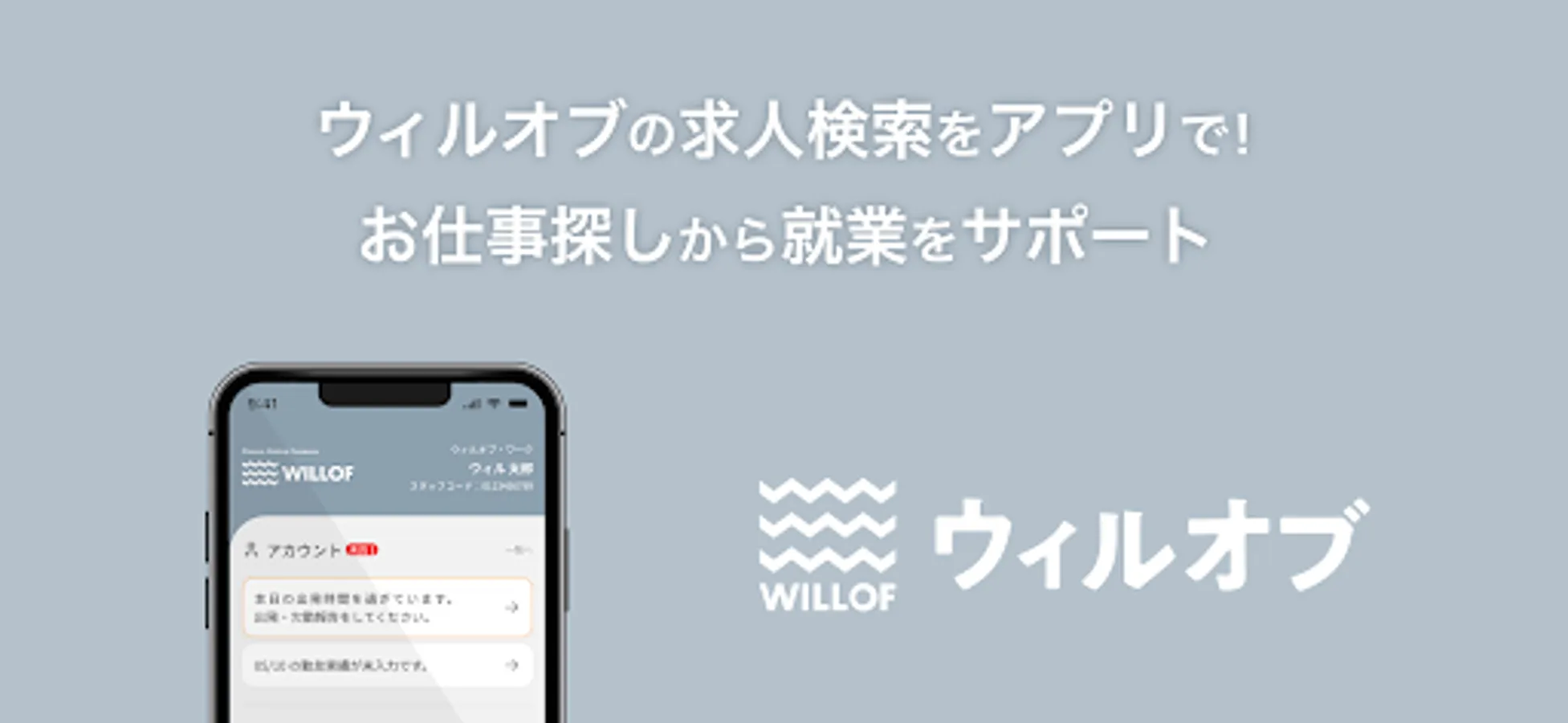 WILLOF WORK Co., Ltd. WILLOF CONSTRUCTION Co., Ltd. is an application that supports those who are looking for a job and those who are employed.